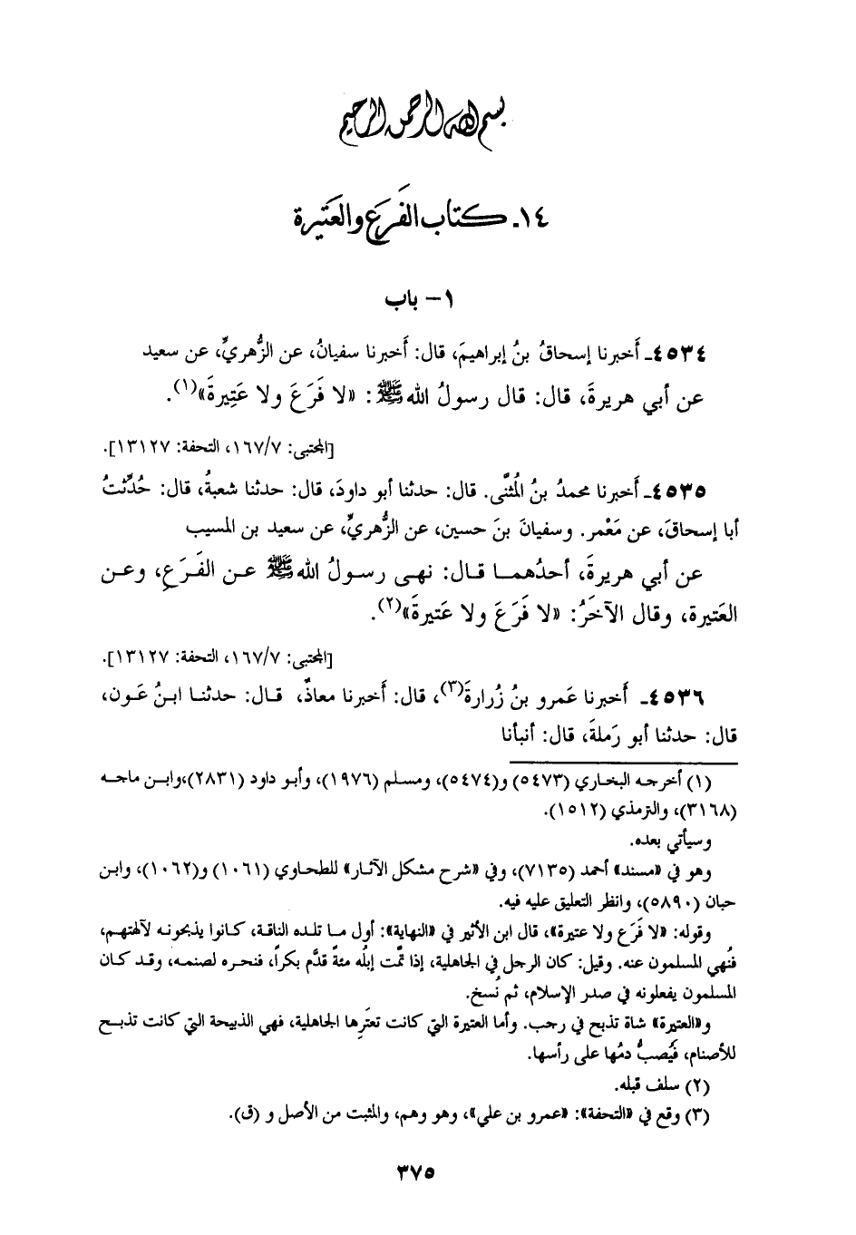 §14 - كِتَابُ الْفَرَعِ وَالْعَتِيرَةِ