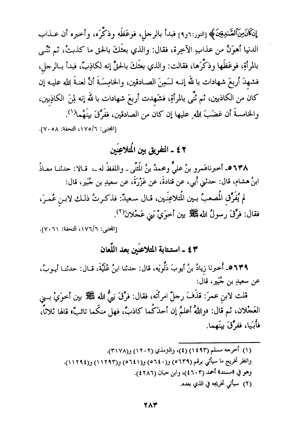 §التَّفْرِيقُ بَيْنَ الْمُتَلَاعِنَيْنِ