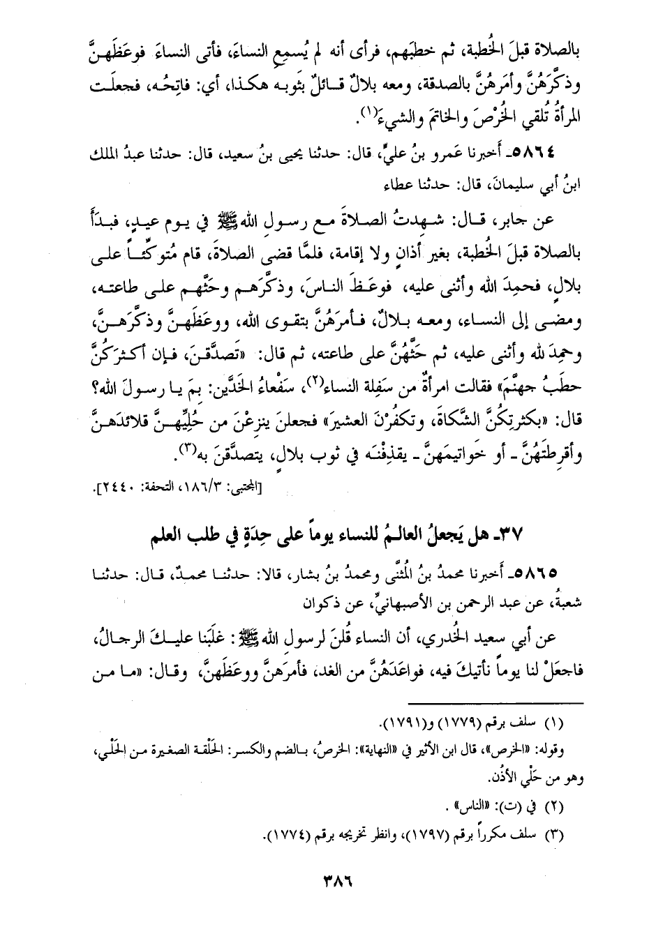§هَلْ يَجْعَلُ الْعَالِمُ لِلنِّسَاءِ يَوْمًا عَلَى حِدَةٍ فِي طَلَبِ الْعِلْمِ؟