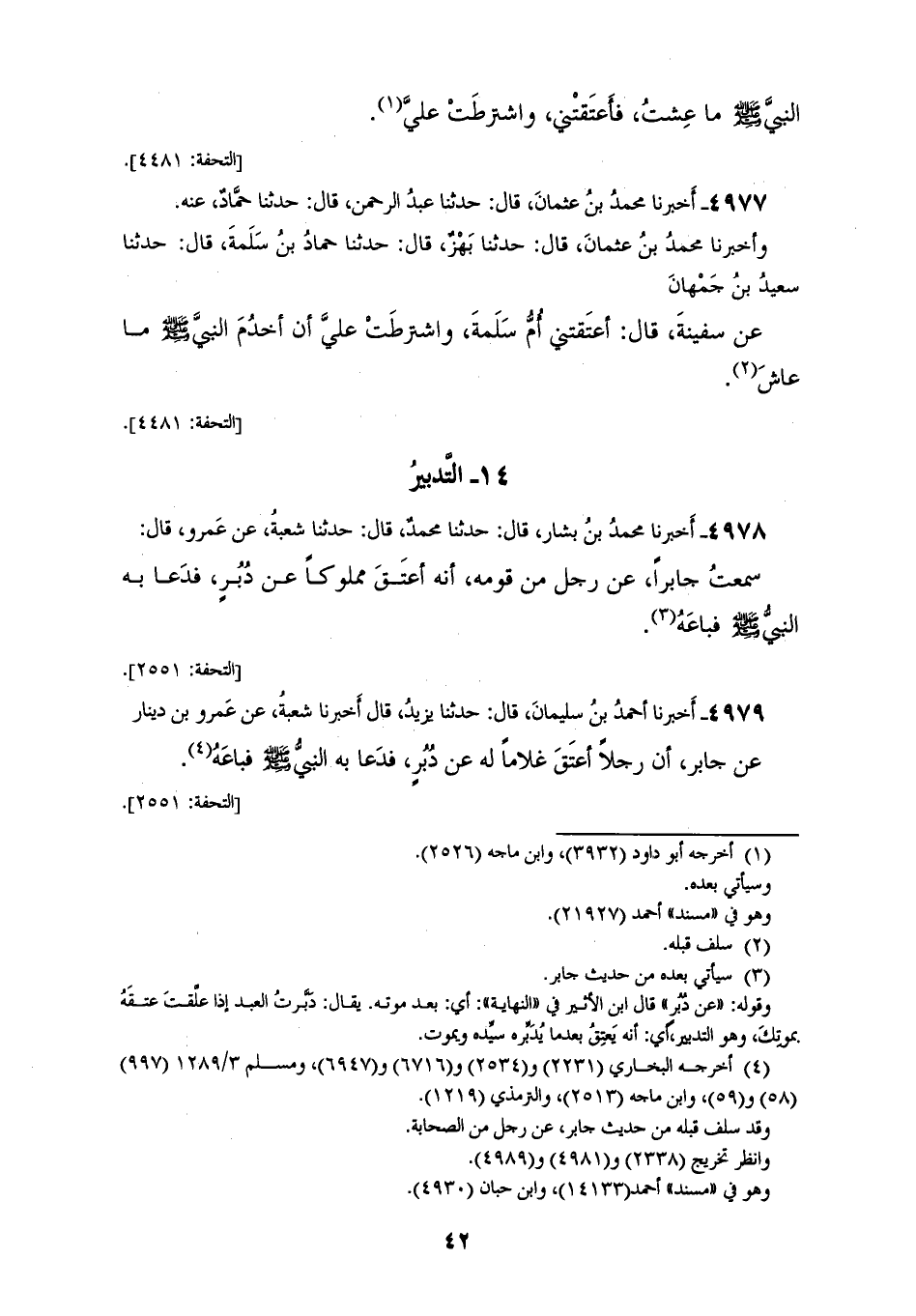 4979 - أَخْبَرَنَا أَحْمَدُ بْنُ سُلَيْمَانَ، قَالَ: حَدَّثَنَا يَزِيدُ، قَالَ: أَخْبَرَنَا شُعْبَةُ، عَنْ عَمْرِو بْنِ دِينَارٍ، عَنْ جَابِرٍ، أَنَّ رَجُلًا، «§أَعْتَقَ غُلَامًا لَهُ عَنْ دُبُرٍ، فَدَعَا بِهِ النَّبِيُّ صَلَّى اللهُ عَلَيْهِ وَسَلَّمَ فَبَاعَهُ»