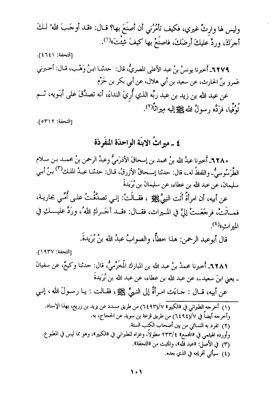 6280 - أَخْبَرَنَا عَبْدُ اللهِ بْنُ مُحَمَّدِ بْنِ إِسْحَاقَ الْأَذْرَمِيُّ، وَعَبْدُ الرَّحْمَنِ بْنُ مُحَمَّدِ بْنِ سَلَّامٍ الطَّرَسُوسِيُّ وَاللَّفْظُ لَهُ، قَالَ: حَدَّثَنَا إِسْحَاقُ الْأَزْرَقُ، قَالَ: حَدَّثَنَا عَبْدُ الْمَلِكِ بْنُ أَبِي سُلَيْمَانَ، عَنْ عَبْدِ اللهِ بْنِ عَطَاءٍ، عَنْ سُلَيْمَانَ بْنِ بُرَيْدَةَ، عَنْ أَبِيهِ، أَنَّ امْرَأَةً، أَتَتِ النَّبِيَّ صَلَّى اللهُ عَلَيْهِ وَسَلَّمَ، فَقَالَتْ: إِنِّي تَصَدَّقْتُ عَلَى أُمِّي بِجَارِيَةٍ، فَمَاتَتْ، فَرَجَعَتْ إِلَيَّ فِي الْمِيرَاثِ، فَقَالَ: «§قَدْ آجَرَكِ اللهُ، وَرَدَّ عَلَيْكِ فِي الْمِيرَاثِ» قَالَ أَبُو عَبْدِ الرَّحْمَنِ: هَذَا خَطَأٌ، وَالصَّوَابُ عَبْدُ اللهِ بْنُ بُرَيْدَةَ