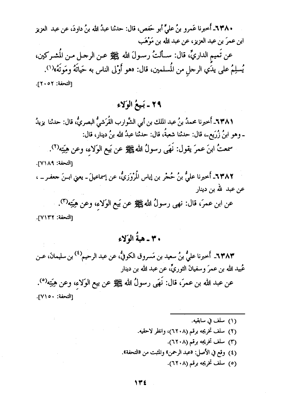 6382 - أَخْبَرَنَا عَلِيُّ بْنُ حُجْرِ بْنِ إِيَاسٍ الْمَرْوَزِيُّ، عَنْ إِسْمَاعِيلَ يَعْنِي ابْنَ جَعْفَرٍ، عَنْ عَبْدِ اللهِ بْنِ دِينَارٍ، عَنِ ابْنِ عُمَرَ، قَالَ: «نَهَى رَسُولُ اللهِ صَلَّى اللهُ عَلَيْهِ وَسَلَّمَ §عَنْ بَيْعِ الْوَلَاءِ، وَعَنْ هِبَتِهِ»