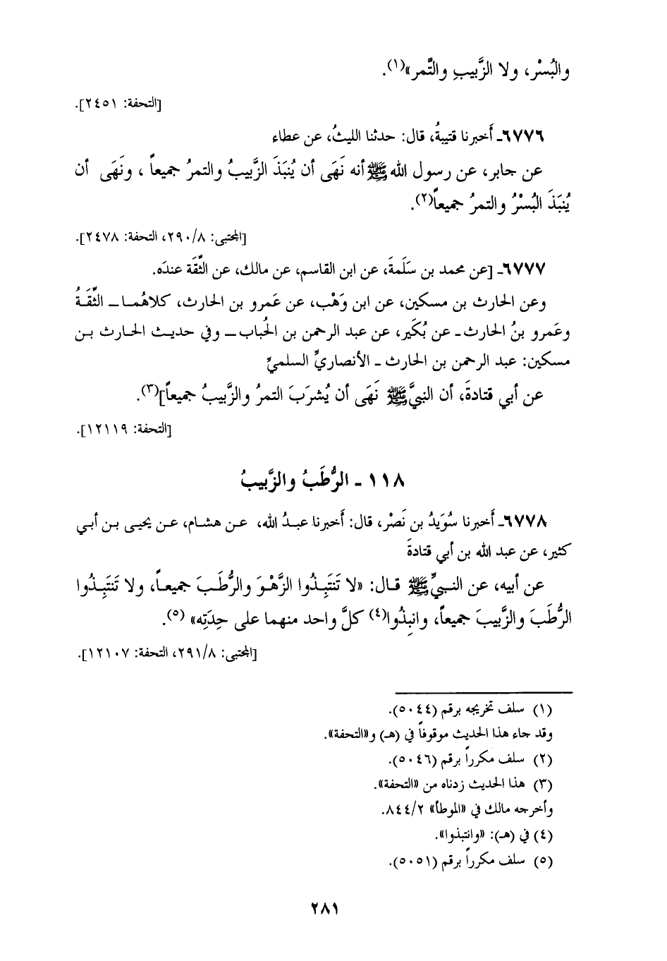 6777 - عَنْ مُحَمَّدِ بْنِ سَلَمَةَ، عَنِ ابْنِ الْقَاسِمِ، عَنِ مَالِكٍ، عَنِ الثِّقَةِ عِنْدَهُ. وَعَنِ الْحَارِثِ بْنِ مِسْكِينٍ، عَنِ ابْنِ وَهْبٍ، عَنْ عَمْرِو بْنِ الْحَارِثِ، كِلَاهُمَا - الثِّقَةُ عَمْرُو بْنُ الْحَارِثِ -، عَنْ بُكَيْرٍ، عَنْ عَبْدِ الرَّحْمَنِ بْنِ الْحُبَابِ - وَفِي حَدِيثِ الْحَارِثِ بْنِ مِسْكِينٍ: عَبْدُ الرَّحْمَنِ بْنُ الْحَارِثِ الْأَنْصَارِيُّ السُّلَمِيُّ، عَنْ أَبِي قَتَادَةَ، أَنَّ النَّبِيَّ صَلَّى اللهُ عَلَيْهِ وَسَلَّمَ: «§نَهَى أَنْ يُشْرَبَ التَّمْرُ وَالزَّبِيبُ جَمِيعًا»