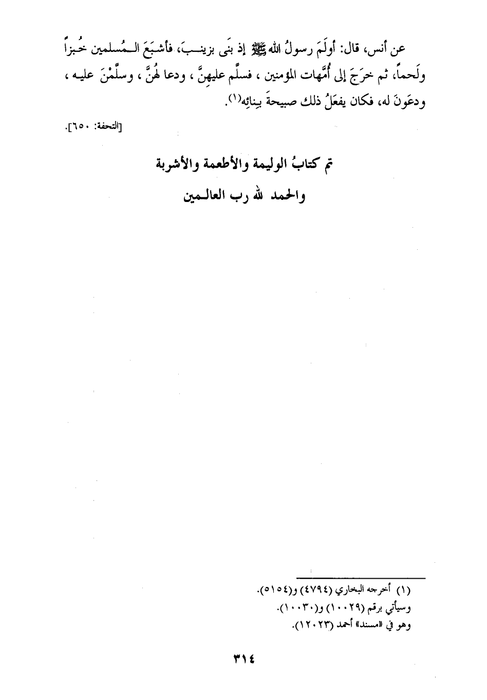 6881 - أَخْبَرَنِي مُحَمَّدُ بْنُ الْمُثَنَّى، عَنْ خَالِدٍ، قَالَ: حَدَّثَنَا حُمَيْدٌ، عَنْ أَنَسٍ قَالَ: «§أَوْلَمَ رَسُولُ اللهِ صَلَّى اللهُ عَلَيْهِ وَسَلَّمَ إِذْ بَنَى بِزَيْنَبَ، فَأَشْبَعَ الْمُسْلِمِينَ خُبْزًا وَلَحْمًا، ثُمَّ خَرَجَ إِلَى أُمَّهَاتِ الْمُؤْمِنِينَ، فَسَلَّمَ عَلَيْهِنَّ، وَدَعَا لَهُنَّ، وَسَلَّمْنَ عَلَيْهِ، وَدَعَوْنَ لَهُ، فَكَانَ يَفْعَلُ ذَلِكَ صَبِيحَةَ بِنَائِهِ»