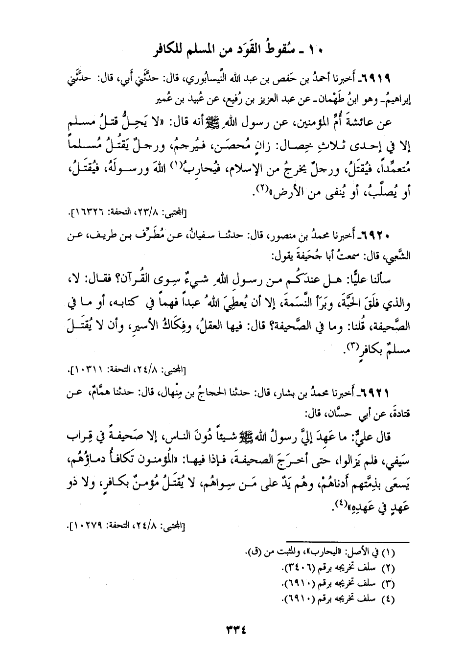§سُقُوطُ الْقَوَدِ مِنَ الْمُسْلِمِ لِلْكَافِرِ