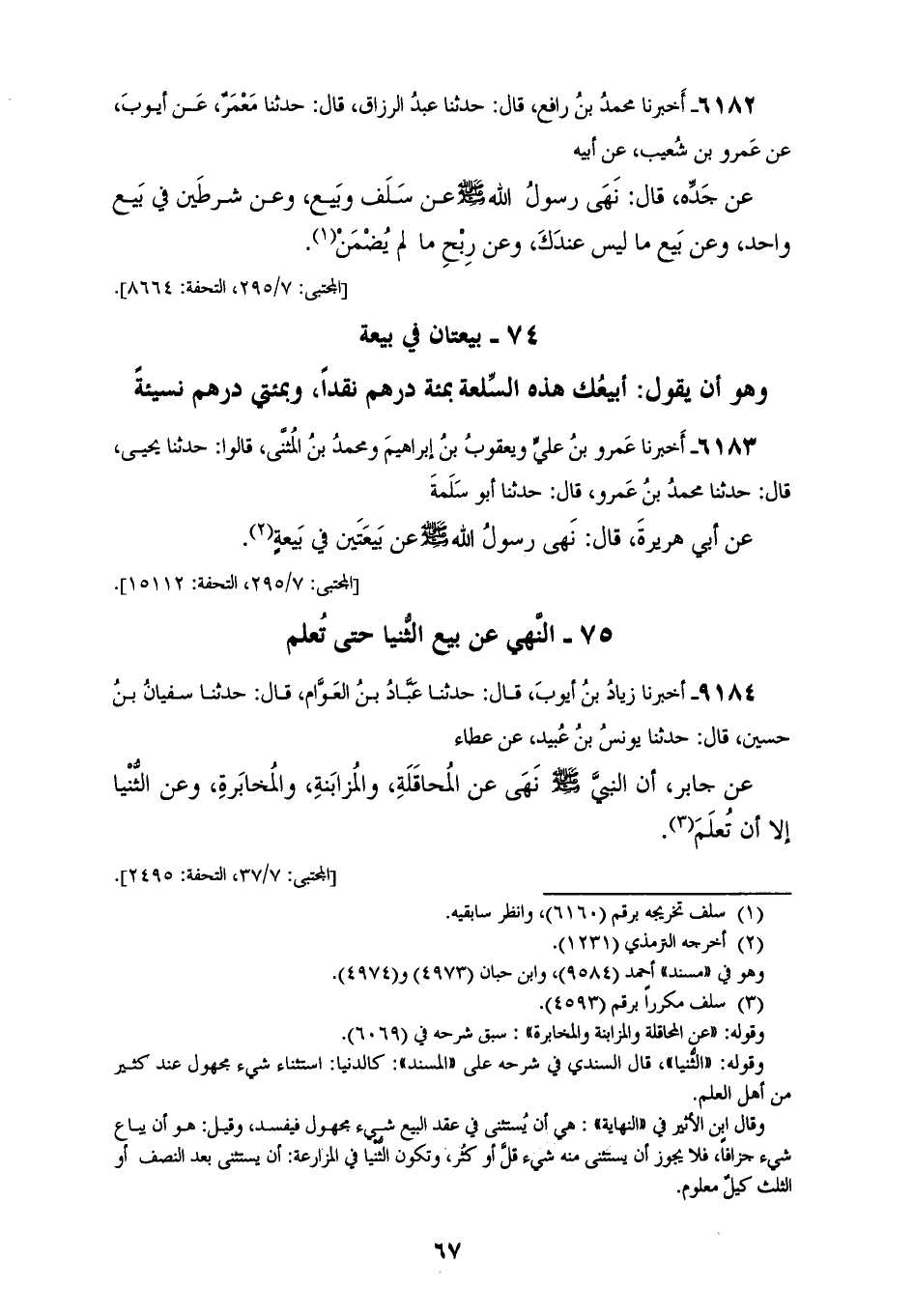 6183 - أَخْبَرَنَا عَمْرُو بْنُ عَلِيٍّ، وَيَعْقُوبُ بْنُ إِبْرَاهِيمَ، وَمُحَمَّدُ بْنُ الْمُثَنَّى، قَالُوا: حَدَّثَنَا يَحْيَى، قَالَ: حَدَّثَنَا مُحَمَّدُ بْنُ عَمْرٍو، قَالَ: حَدَّثَنَا أَبُو سَلَمَةَ، عَنْ أَبِي هُرَيْرَةَ، قَالَ: نَهَى رَسُولُ اللهِ صَلَّى اللهُ عَلَيْهِ وَسَلَّمَ §عَنْ بَيْعَتَيْنِ فِي بِيعَةٍ