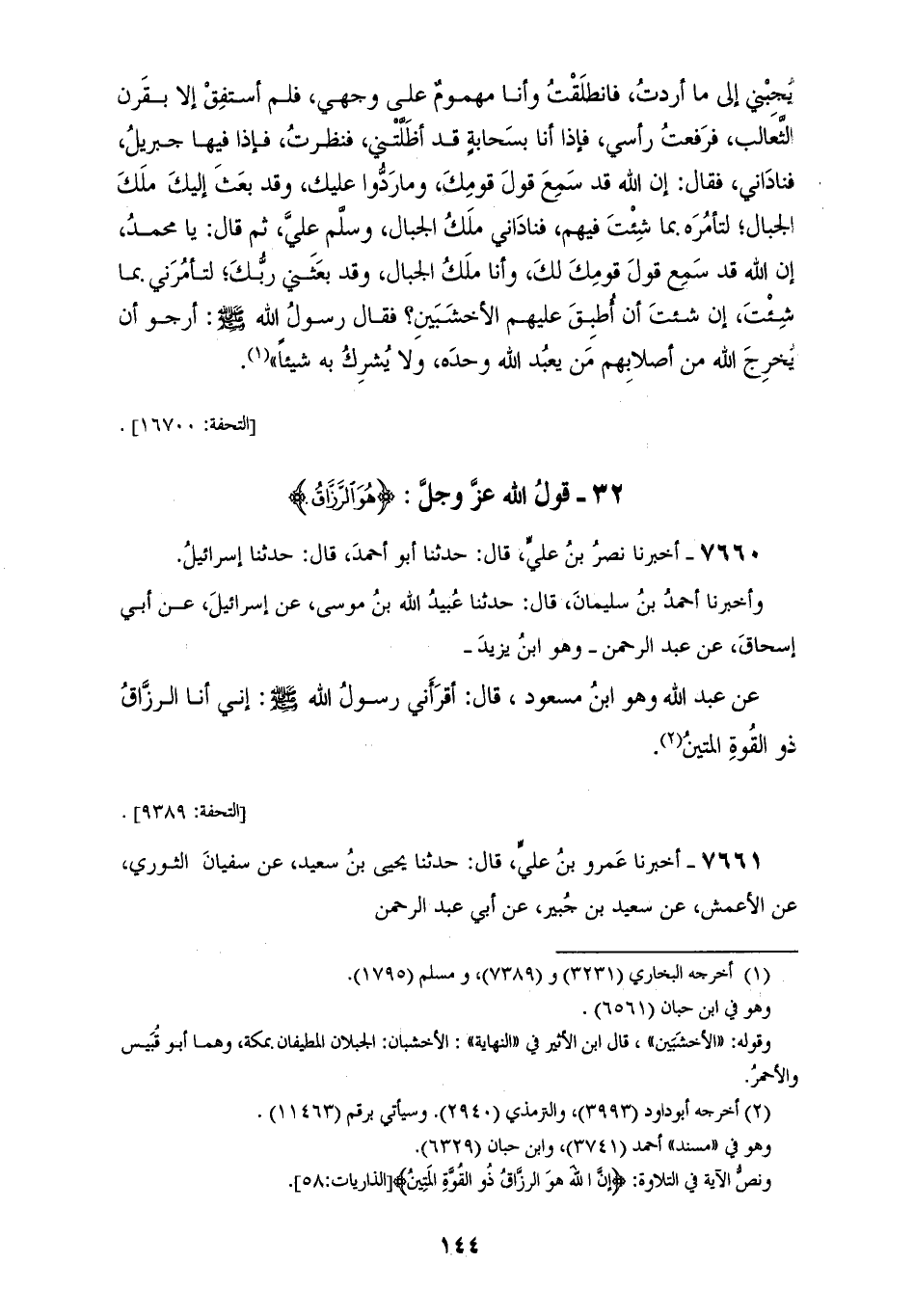 §قَوْلُ اللهِ عَزَّ وَجَلَّ: {هُوَ الرَّزَّاقُ} [الذاريات: 58]