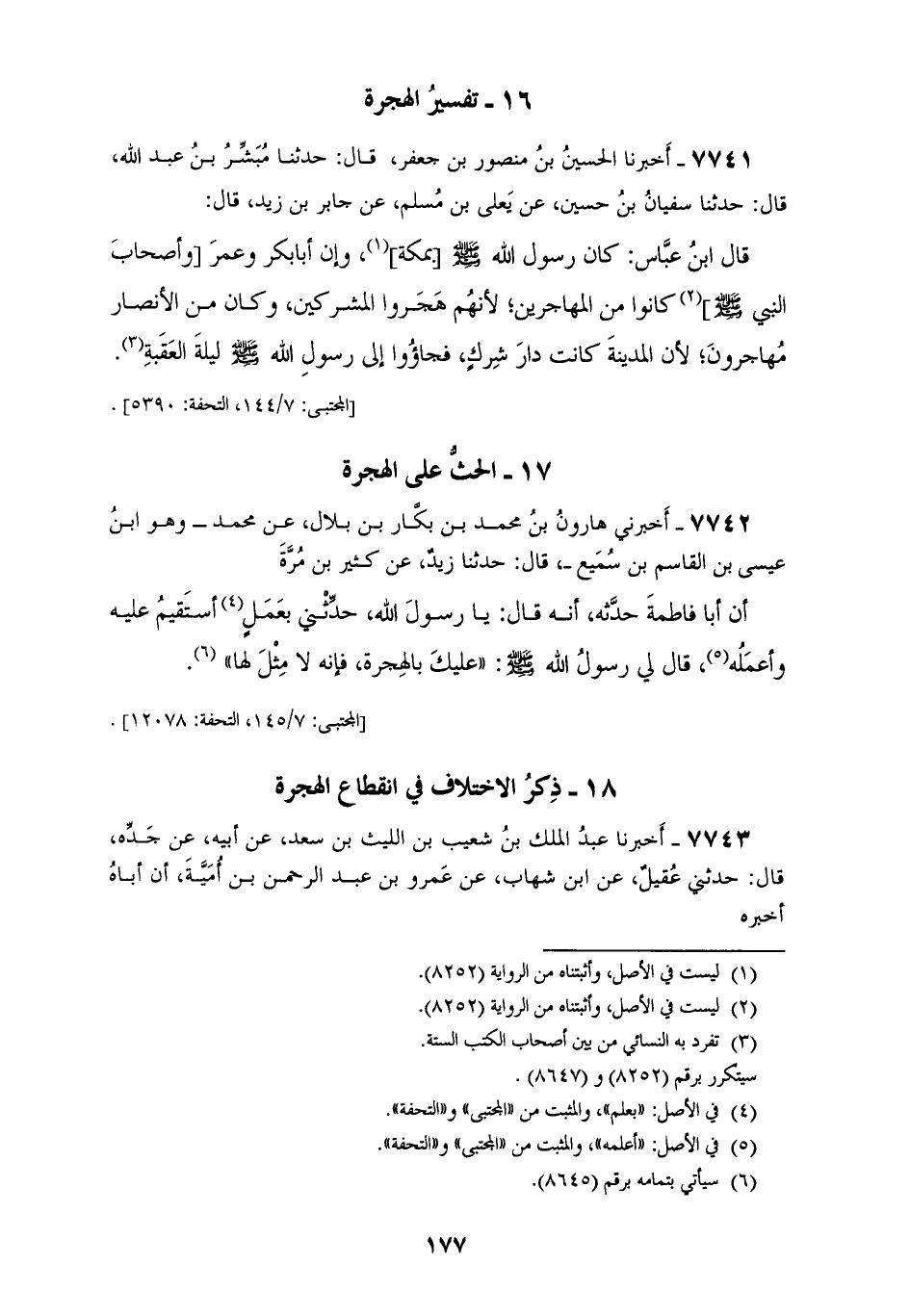 7741 - أَخْبَرَنَا الْحُسَيْنُ بْنُ مَنْصُورِ بْنِ جَعْفَرٍ، قَالَ: حَدَّثَنَا مُبَشِّرُ بْنُ عَبْدِ اللهِ، قَالَ: حَدَّثَنَا سُفْيَانُ بْنُ حُسَيْنٍ، عَنْ يَعْلَى بْنِ مُسْلِمٍ، عَنْ جَابِرِ بْنِ زَيْدٍ، قَالَ: قَالَ ابْنُ عَبَّاسٍ: كَانَ رَسُولَ اللهِ صَلَّى اللهُ عَلَيْهِ وَسَلَّمَ بِمَكَّةَ، وَإِنَّ أَبَا بَكْرٍ وَعُمَرَ وَأَصْحَابُ النَّبِيِّ صَلَّى اللهُ عَلَيْهِ وَسَلَّمَ §كَانُوا مِنَ الْمُهَاجِرِينَ لِأَنَّهُمْ هَجَرُوا الْمُشْرِكِينَ، وَكَانَ مِنَ الْأَنْصَارِ مُهَاجِرُونَ لَأَنَّ الْمَدِينَةَ كَانَتْ دَارَ شِرْكٍ، فَجَاءُوا إِلَى رَسُولِ اللهِ صَلَّى اللهُ عَلَيْهِ وَسَلَّمَ لَيْلَةَ الْعَقَبَةِ "
