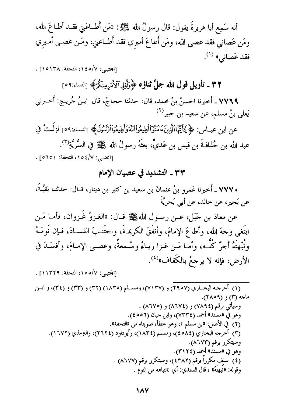 §التَّشْدِيدُ فِي عِصْيَانِ الْإِمَامِ