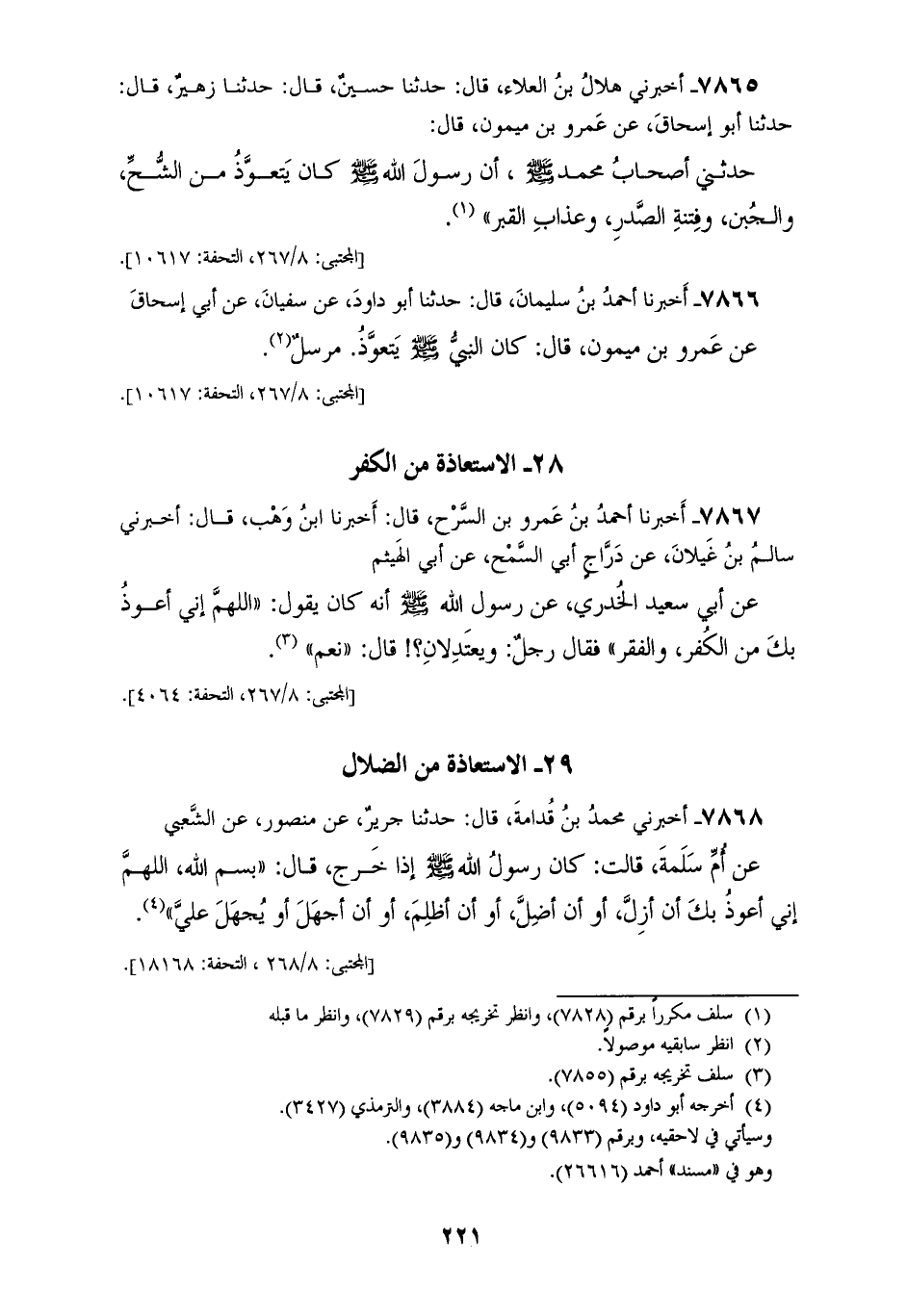 7866 - أَخْبَرَنَا أَحْمَدُ بْنُ سُلَيْمَانَ، قَالَ: حَدَّثَنَا أَبُو دَاوُدَ، عَنْ سُفْيَانَ، عَنْ أَبِي إِسْحَاقَ، عَنْ عَمْرِو بْنِ مَيْمُونٍ، قَالَ: كَانَ النَّبِيُّ صَلَّى اللهُ عَلَيْهِ وَسَلَّمَ «§يَتَعَوَّذُ» مُرْسَلٌ