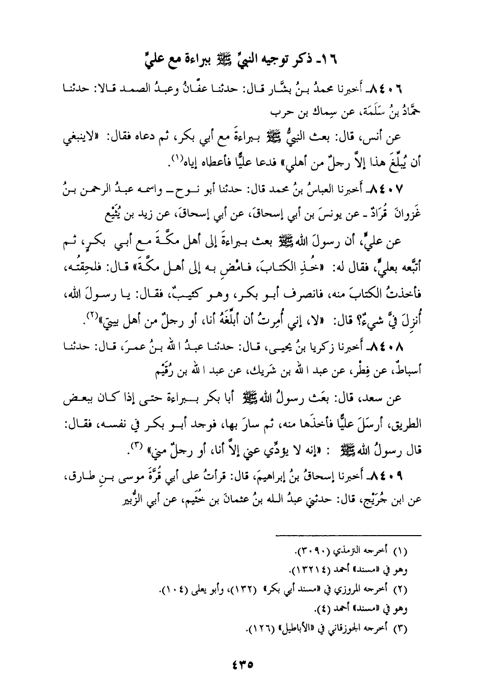 §ذِكْرُ تَوْجِيهِ النَّبِيِّ صَلَّى اللهُ عَلَيْهِ وَسَلَّمَ بِبَرَاءَةَ مَعَ عَلِيٍّ