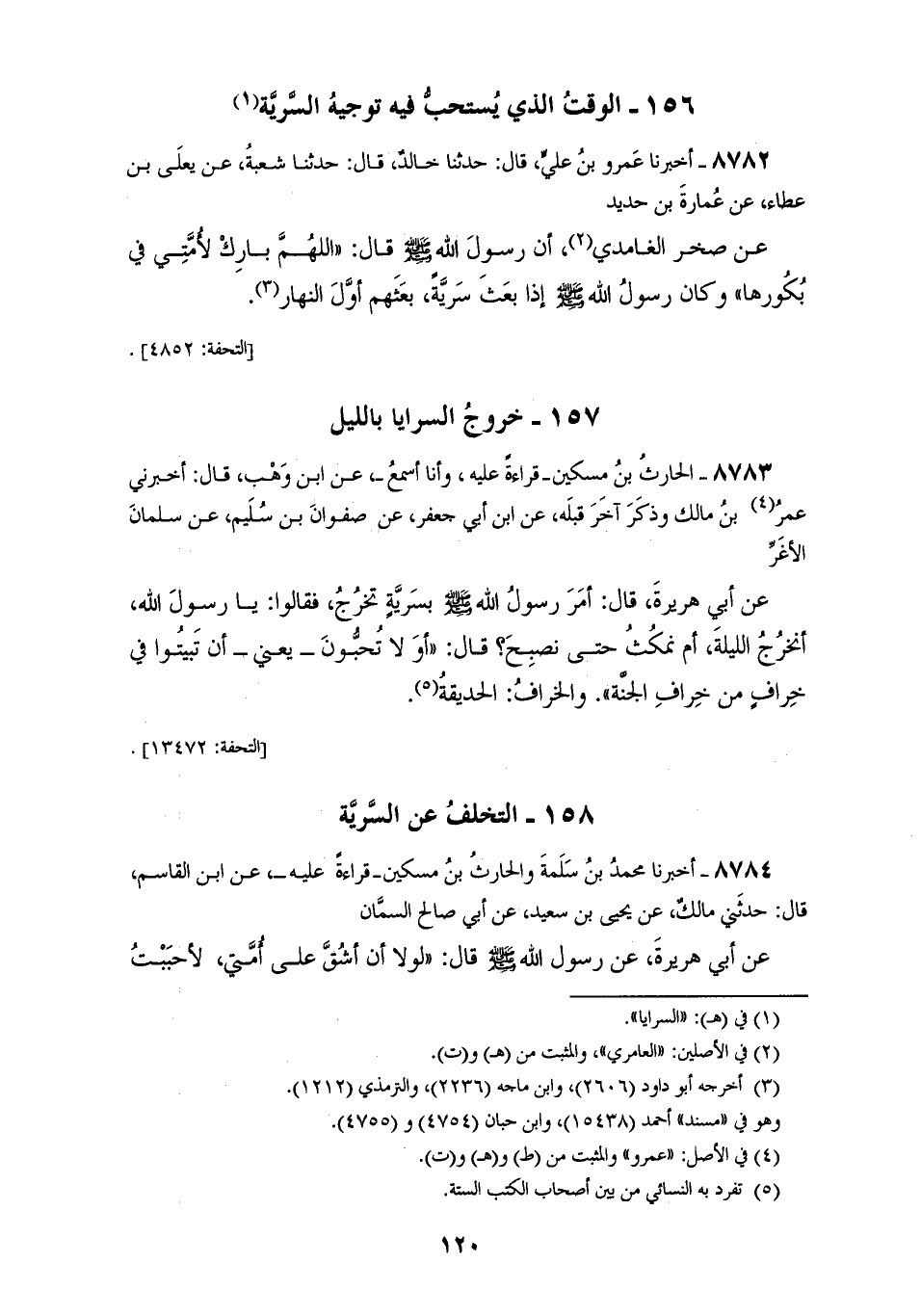 8783 - الْحَارِثُ بْنُ مِسْكِينٍ قِرَاءَةً عَلَيْهِ وَأَنَا أَسْمَعُ عَنِ ابْنِ وَهْبٍ قَالَ: أَخْبَرَنِي عُمَرُ بْنُ مَالِكٍ، وَذَكَرَ آخَرُ قَبْلَهُ عَنِ ابْنِ أَبِي جَعْفَرٍ، عَنْ صَفْوَانَ بْنِ سُلَيْمٍ، عَنْ سَلْمَانَ الْأَغَرِّ، عَنْ أَبِي هُرَيْرَةَ قَالَ: §أَمَرَ رَسُولُ اللهِ صَلَّى اللهُ عَلَيْهِ وَسَلَّمَ بِسَرِيَّةٍ تَخْرُجُ فَقَالُوا: يَا رَسُولَ اللهِ، أَتَخْرُجُ اللَّيْلَةَ أَمْ نَمْكُثُ حَتَّى نُصْبِحَ قَالَ: «أَوَ لَا تُحِبُّونَ يَعْنِي أَنْ تَبِيتُوا فِي خِرَافٍ مِنْ خِرَافِ الْجَنَّةِ؟، والْخِرَافُ الْحَدِيقَةُ»