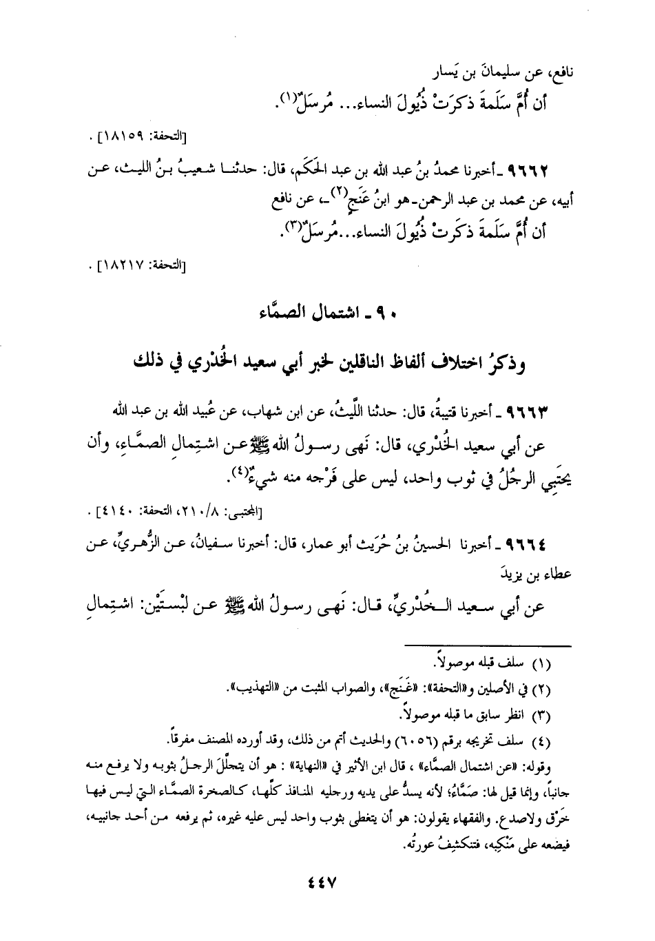 §اشْتِمَالُ الصَّمَّاءِ وَذِكْرُ اخْتِلَافِ أَلْفَاظِ النَّاقِلِينَ لِخَبَرِ أَبِي سَعِيدٍ الْخُدْرِيِّ فِي ذَلِكَ