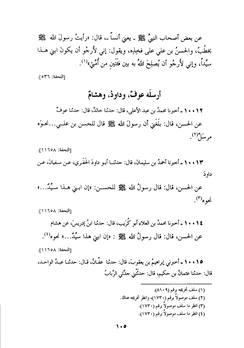 10015 - أَخْبَرَنِي إِبْرَاهِيمُ بْنُ يَعْقُوبَ قَالَ: حَدَّثَنَا عَفَّانُ قَالَ: حَدَّثَنَا عَبْدُ الْوَاحِدِ قَالَ: حَدَّثَنَا عُثْمَانُ بْنُ حَكِيمٍ قَالَ: حَدَّثَتْنِي جَدَّتِي الرَّبَابُ، عَنْ سَهْلِ بْنِ حنَيْفٍ قَالَ: مَرَّ بِنَا سَيْلٌ، فَذَهَبْنَا نَغْتَسِلُ فِيهِ، فَخَرَجْتُ مَحْمُومًا فَنَمَى ذَلِكَ إِلَى رَسُولِ اللهِ صَلَّى اللهُ عَلَيْهِ وَسَلَّمَ قَالَ: «§مُرُوا أَبَا ثَابِتٍ يَتَعَوَّذُ» فَقُلْتُ: يَا سَيِّدِي وَالرُّقَى صَالِحَةٌ؟ قَالَ: " لَا رَقْيَ إِلَّا مِنْ ثَلَاثٍ: مِنَ الْحُمَّى وَالنَّفْسِ وَاللَّدْغَةِ "