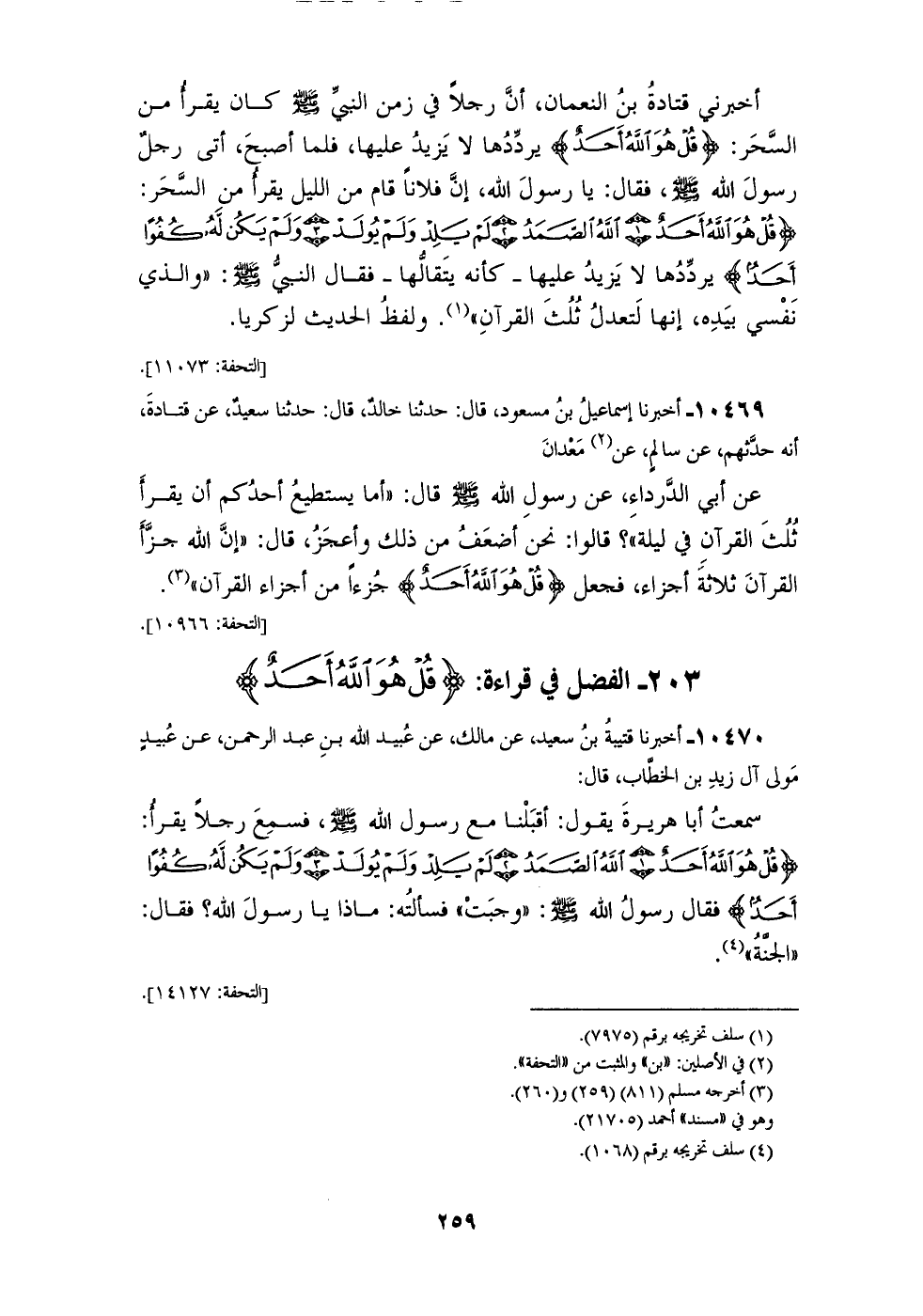 §الْفَضْلُ فِي قِرَاءَةِ {قُلْ هُوَ اللهُ أَحَدٌ} [الإخلاص: 1]