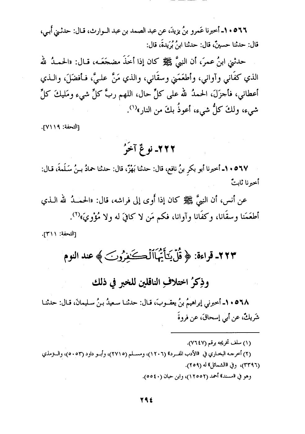 §قِرَاءَةُ {قُلْ يَا أَيُّهَا الْكَافِرُونَ} [الكافرون: 1] عِنْدَ النَّوْمِ، وَذِكْرُ اخْتِلَافِ النَّاقِلِينَ لِلْخَبَرِ فِي ذَلِكَ