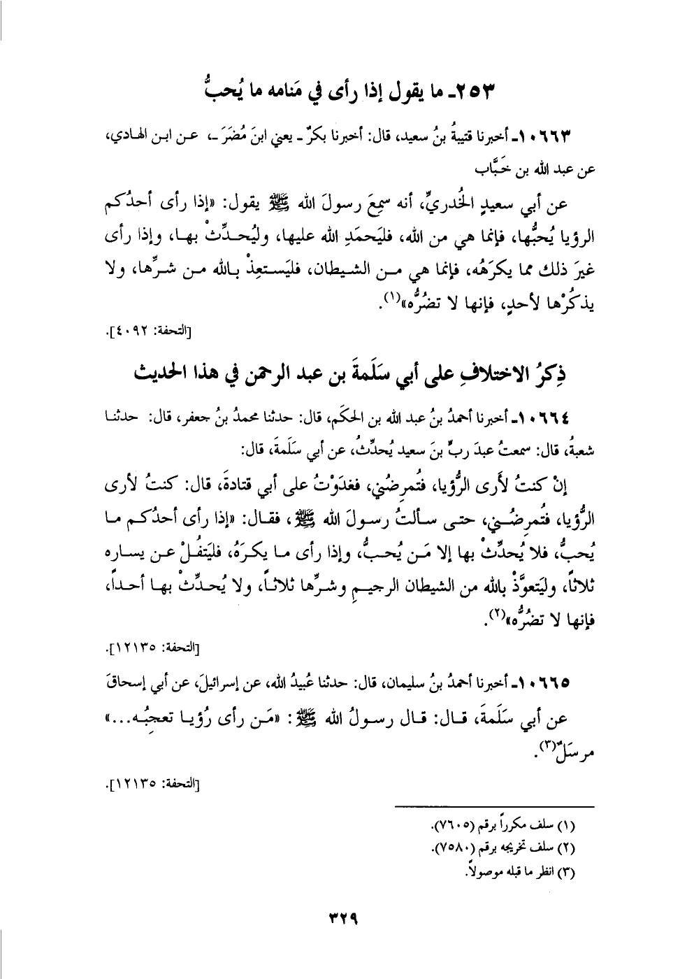 10665 - أَخْبَرَنَا أَحْمَدُ بْنُ سُلَيْمَانَ، قَالَ: حَدَّثَنَا عُبَيْدُ اللهِ، عَنْ إِسْرَائِيلَ، عَنْ أَبِي إِسْحَاقَ، عَنْ أَبِي سَلَمَةَ، قَالَ: قَالَ رَسُولُ اللهِ صَلَّى اللهُ عَلَيْهِ وَسَلَّمَ: «مَنْ رَأَى رُؤْيَا تُعْجِبُهُ» مُرْسَلٌ