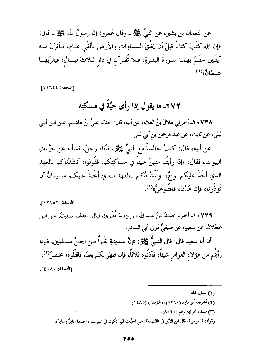 §مَا يَقُولُ إِذَا رَأَى حَيَّةً فِي مَسْكَنِهِ