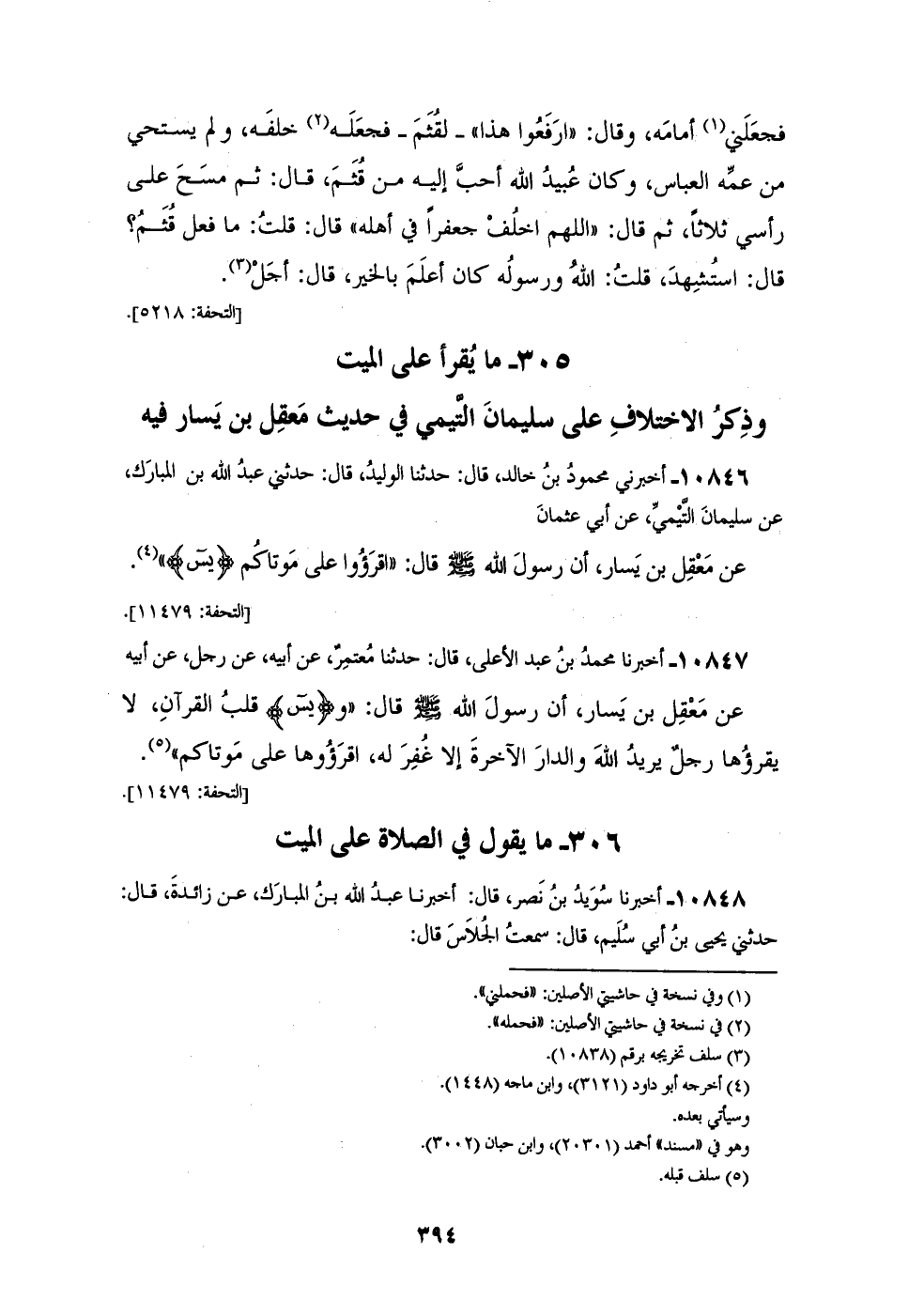 10846 - أَخْبَرَنِي مَحْمُودُ بْنُ خَالِدٍ، قَالَ: حَدَّثَنَا الْوَلِيدُ، قَالَ: حَدَّثَنِي عَبْدُ اللهِ بْنُ الْمُبَارَكِ، عَنْ سُلَيْمَانَ التَّيْمِيِّ، عَنْ أَبِي عُثْمَانَ، عَنْ مَعْقِلِ بْنِ يَسَارٍ، أَنَّ رَسُولَ اللهِ صَلَّى اللهُ عَلَيْهِ وَسَلَّمَ قَالَ: " §اقْرَءُوا عَلَى مَوْتَاكُمْ {يس} [يس: 1]