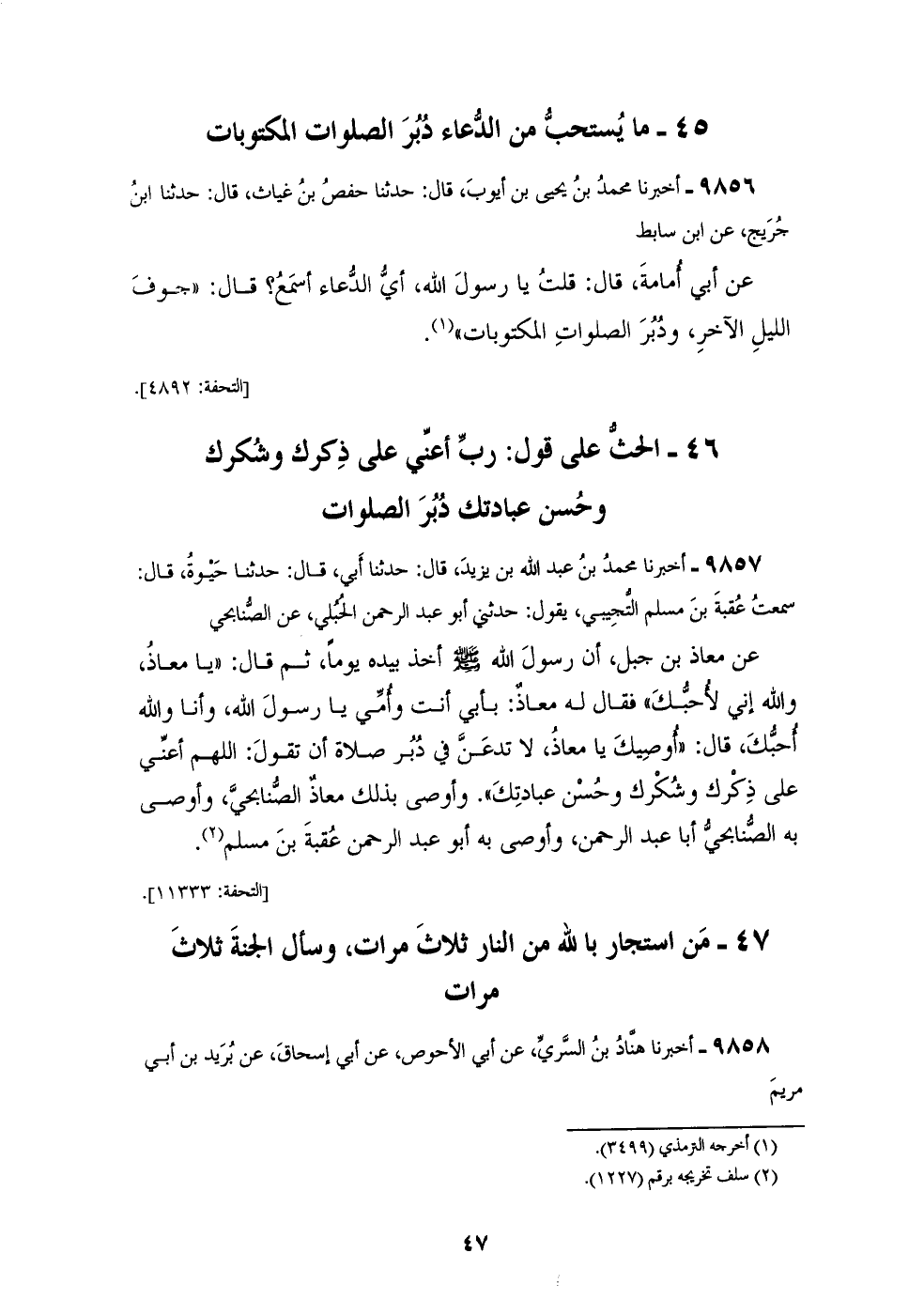 §الْحَثُّ عَلَى قَوْلِ: «رَبِّ أَعِنِّي عَلَى ذِكْرِكَ، وَشُكْرِكَ وَحُسْنِ عِبَادَتِكَ» دُبُرَ الصَّلَوَاتِ