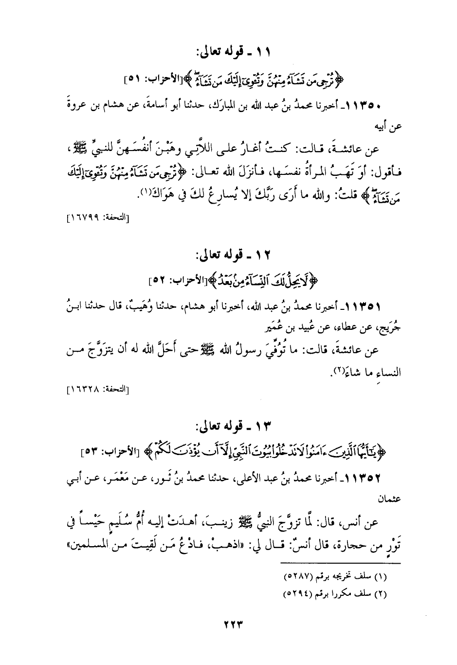 §قَوْلُهُ تَعَالَى: {تُرْجِي مَنْ تَشَاءُ مِنْهُنَّ وَتُؤْوِي إِلَيْكَ مَنْ تَشَاءُ} [الأحزاب: 51]