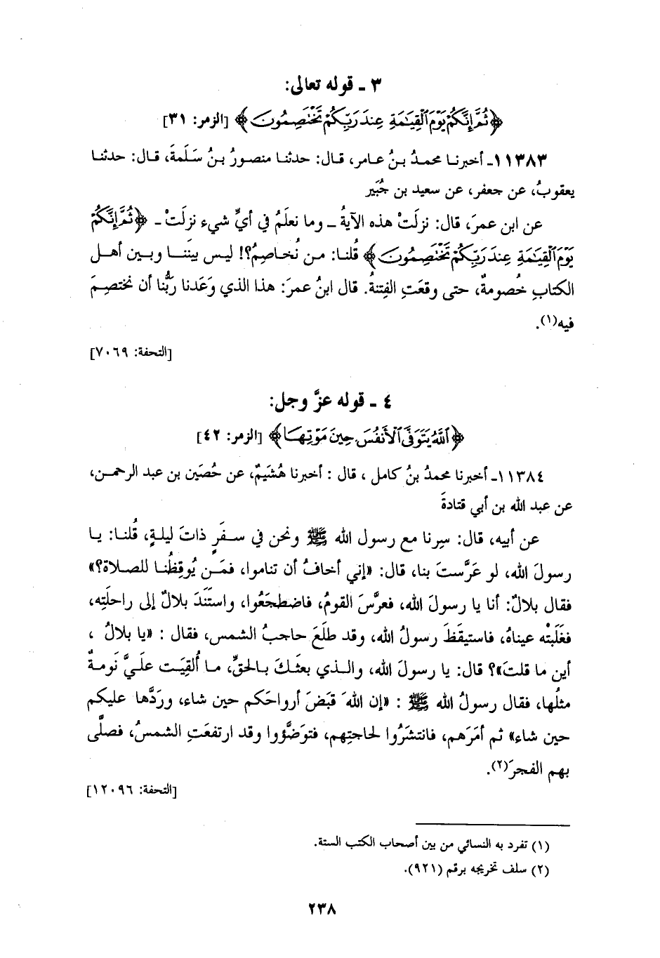 11383 - أَخْبَرَنَا مُحَمَّدُ بْنُ عَامِرٍ، قَالَ: حَدَّثَنَا مَنْصُورُ بْنُ سَلَمَةَ، قَالَ: حَدَّثَنَا يَعْقُوبُ، عَنْ جَعْفَرٍ، عَنْ سَعِيدِ بْنِ جُبَيْرٍ، عَنِ ابْنِ عُمَرَ، قَالَ: " نَزَلَتْ هَذِهِ الْآيَةُ , وَمَا نَعْلَمُ فِي أَيِّ شَيْءٍ نَزَلَتْ {§ثُمَّ إِنَّكُمْ يَوْمَ الْقِيَامَةِ عِنْدَ رَبِّكُمْ تَخْتَصِمُونَ} [الزمر: 31] قُلْنَا: مَنْ نُخَاصِمُ، لَيْسَ بَيْنَنَا وَبَيْنَ أَهْلِ الْكِتَابِ خُصُومَةٌ؟، حَتَّى وَقَعَتِ الْفِتْنَةُ "، قَالَ ابْنُ عُمَرَ: «هَذَا الَّذِي وَعَدَنَا رَبُّنَا أَنْ نَخْتَصِمَ فِيهِ»