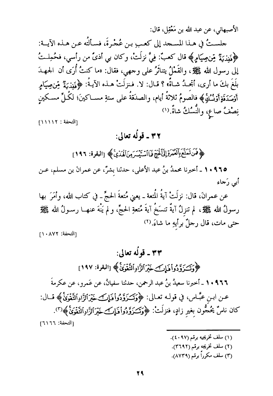 10966 - أَخْبَرَنَا سَعِيدُ بْنُ عَبْدِ الرَّحْمَنِ، حَدَّثَنَا سُفْيَانُ، عَنْ عَمْرٍو، عَنْ عِكْرِمَةَ، عَنِ ابْنِ عَبَّاسٍ، فِي قَوْلِهِ تَعَالَى: {§وَتَزَوَّدُوا فَإِنَّ خَيْرَ الزَّادِ التَّقْوَى} [البقرة: 197] قَالَ: كَانَ نَاسٌ يَحُجُّونَ بِغَيْرِ زَادٍ، فَنَزَلَتْ {وَتَزَوَّدُوا فَإِنَّ خَيْرَ الزَّادِ التَّقْوَى} [البقرة: 197]