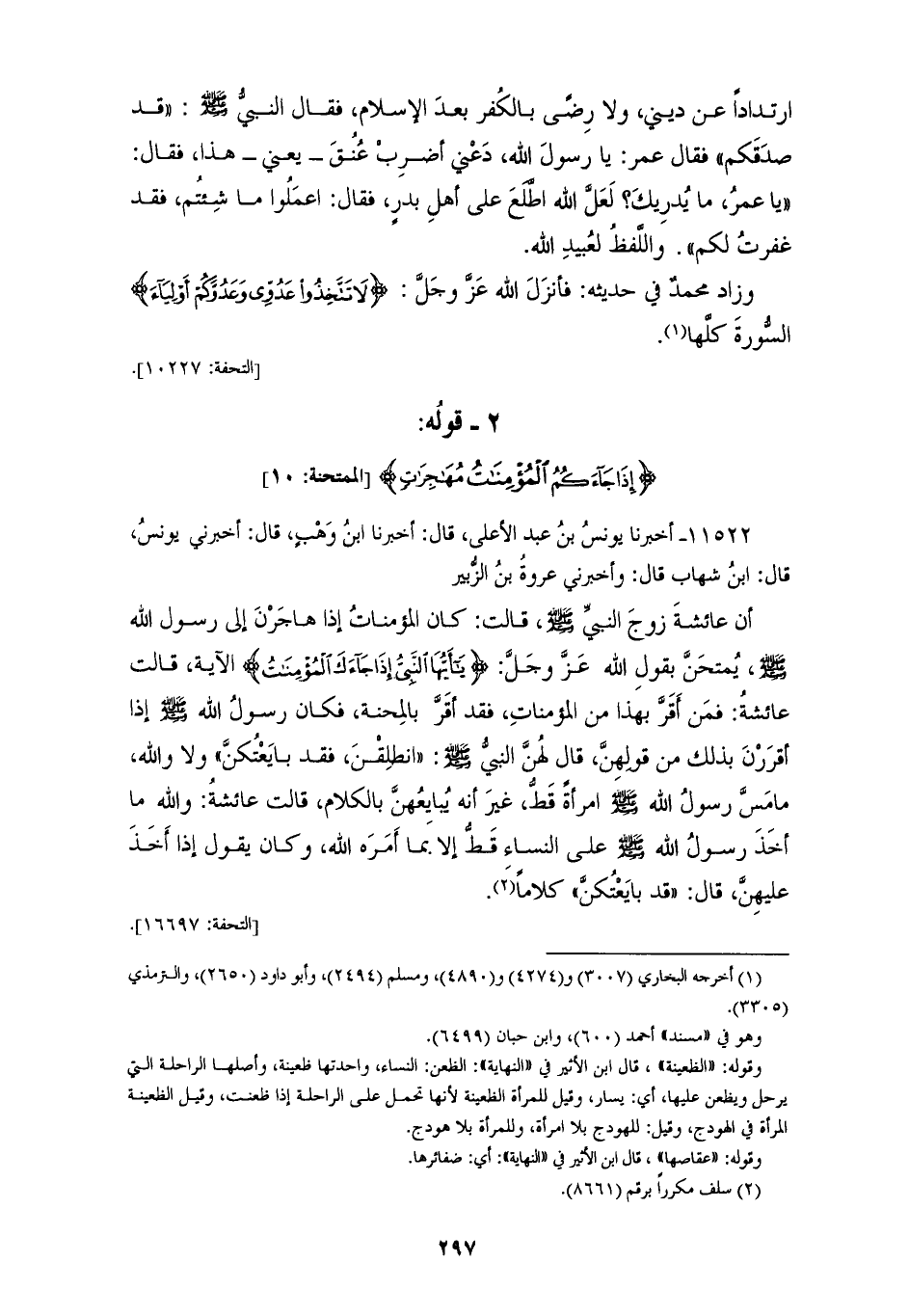 §قَوْلُهُ: {إِذَا جَاءَكُمُ الْمُؤْمِنَاتُ مُهَاجِرَاتٍ} [الممتحنة: 10]