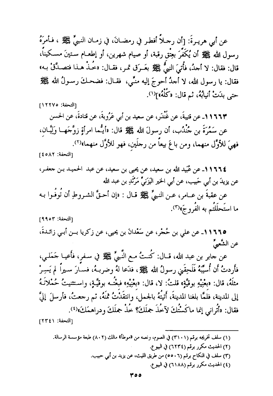 11664 - عَنْ عُبَيْدِ اللهِ بْنِ سَعِيدٍ، عَنْ يَحْيَى بْنِ سَعِيدٍ، عَنْ عَبْدِ الْحَمِيدِ بْنِ جَعْفَرٍ، عَنْ يَزِيدَ بْنِ أَبِي حَبِيبٍ، عَنْ أَبِي الْخَيْرِ الْيَزَنِيِّ مَرْثَدِ بْنِ عَبْدِ اللهِ، عَنْ عُقْبَةَ بْنِ عَامِرٍ، عَنِ النَّبِيِّ صَلَّى اللهُ عَلَيْهِ وَسَلَّمَ قَالَ: «إِنَّ §أَحَقَّ الشُّرُوطِ أَنْ تُوَفُّوا بِهِ مَا اسْتَحْلَلْتُمْ بِهِ الْفُرُوجَ»