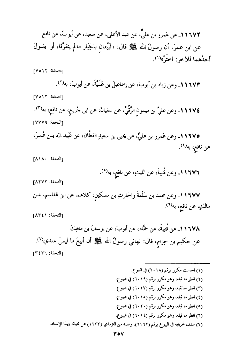 11678 - عَنْ قُتَيْبَةَ، عَنْ حَمَّادٍ، عَنْ أَيُّوبَ، عَنْ يُوسُفَ بْنِ مَاهِكَ، عَنْ حَكِيمِ بْنِ حِزَامٍ، قَالَ: «§نَهَانِي رَسُولُ اللهِ صَلَّى اللهُ عَلَيْهِ وَسَلَّمَ أَنْ أَبِيعَ مَا لَيْسَ عِنْدِي»