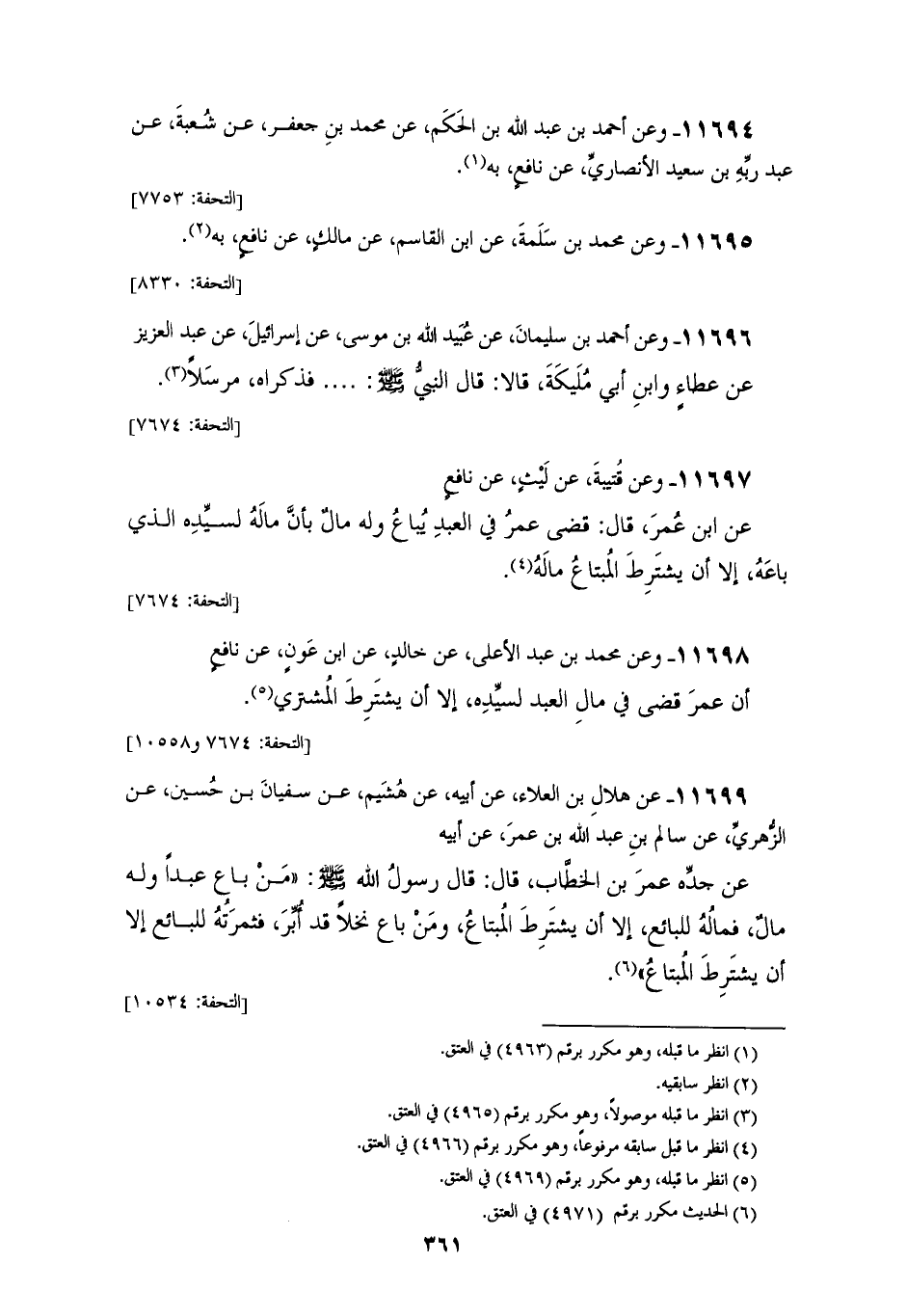 11698 - وَعَنْ مُحَمَّدِ بْنِ عَبْدِ الْأَعْلَى، عَنْ خَالِدٍ، عَنِ ابْنِ عَوْنٍ، عَنْ نَافِعٍ: «أَنَّ عُمَرَ، قَضَى فِي §مَالِ الْعَبْدِ لِسَيِّدِهِ، إِلَّا أَنْ يَشْتَرِطَ الْمُشْتَرِي»