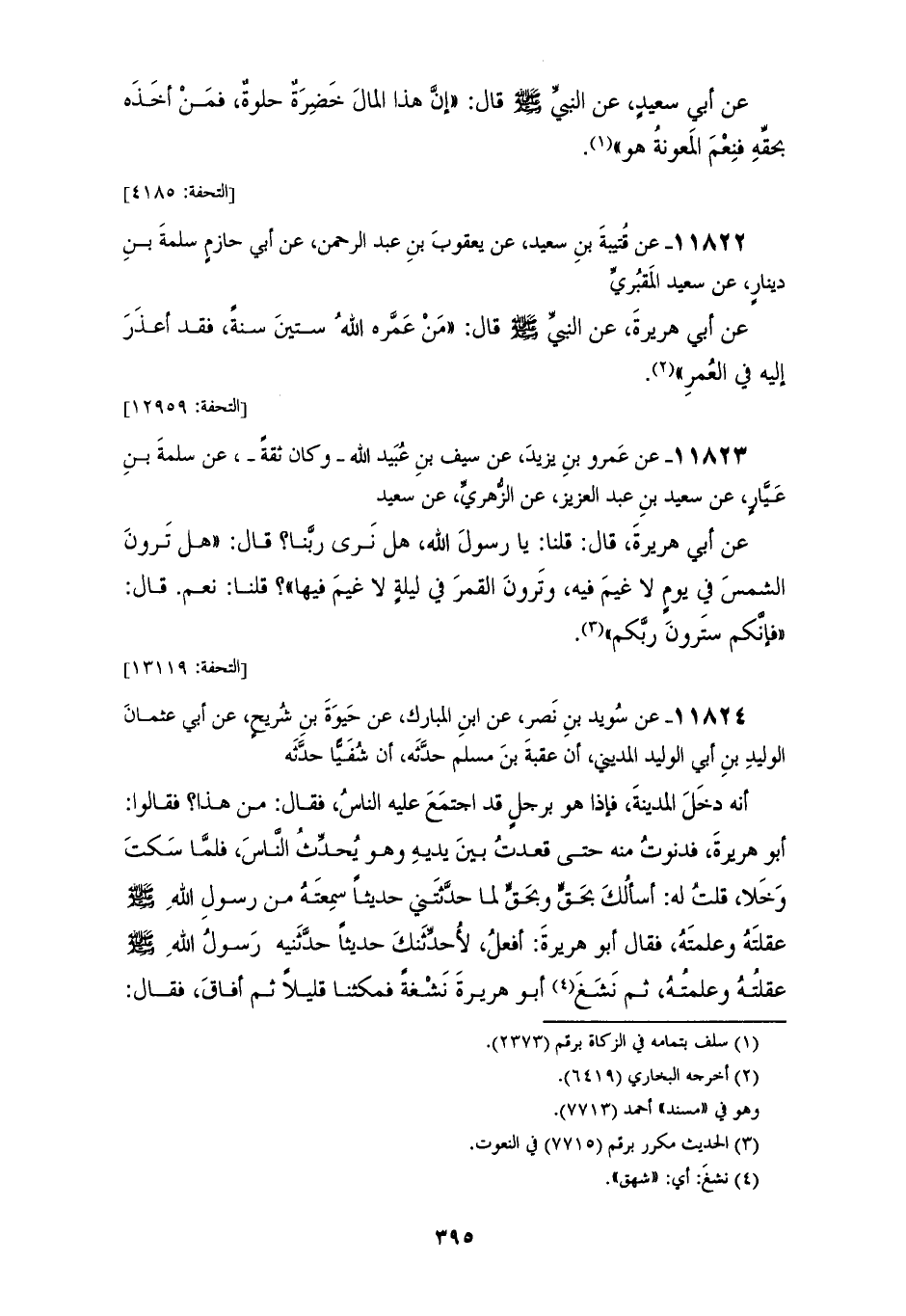 11822 - عَنْ قُتَيْبَةَ بْنِ سَعِيدٍ، عَنْ يَعْقُوبَ بْنِ عَبْدِ الرَّحْمَنِ، عَنْ أَبِي حَازِمٍ سَلَمَةَ بْنِ دِينَارٍ، عَنْ سَعِيدٍ الْمَقْبُرِيِّ، عَنْ أَبِي هُرَيْرَةَ، عَنْ النَّبِيِّ صَلَّى اللهُ عَلَيْهِ وَسَلَّمَ قَالَ: «§مَنْ عَمَّرَهُ اللهُ سِتِّينَ سَنَةً، فَقَدْ أَعْذَرَ إِلَيْهِ فِي الْعُمُرِ»
