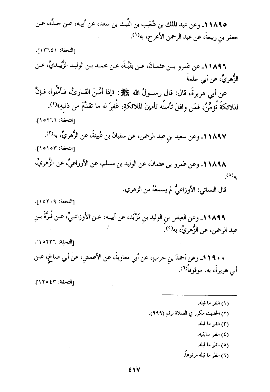11898 - وَعَنْ عَمْرو بْن عُثْمَان، عَنْ الْوَلِيد بْن مُسْلِم، عَنْ الْأَوْزَاعِي، عَنْ الزُّهْرِي، بِه. قَالَ النَّسَائِي: الْأَوْزَاعِي لَم يَسْمَعْه مِنْ الزُّهْرِي،