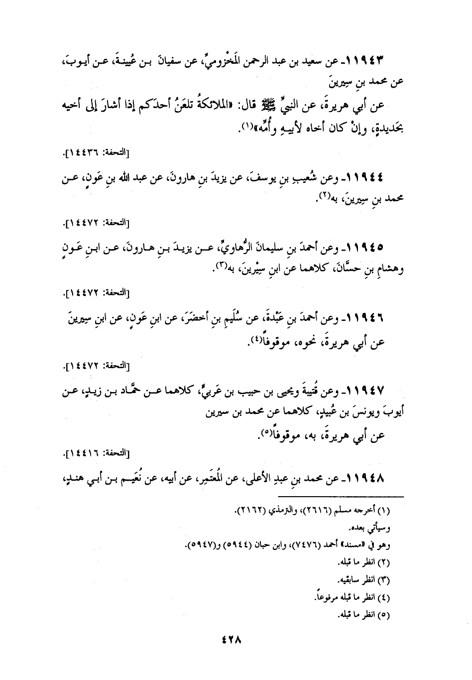 11944 - وَعَنْ شُعَيْب بْنِ يُوسُفَ، عَنْ يَزِيدَ بْنِ هَارُونَ، عَنْ عَبْدِ اللهِ بْنِ عَوْنٍ، عَنْ مُحَمَّدِ بْنِ سِيرِينَ، بِهِ