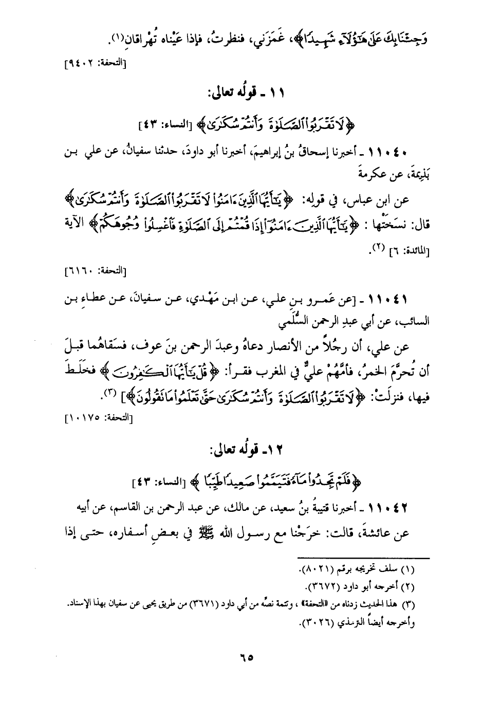 11040 - أَخْبَرَنَا إِسْحَاقُ بْنُ إِبْرَاهِيمَ، أَخْبَرَنَا أَبُو دَاوُدَ، حَدَّثَنَا سُفْيَانُ، عَنْ عَلِيِّ بْنِ بَذِيمَةَ، عَنْ عِكْرِمَةَ، عَنِ ابْنِ عَبَّاسٍ، فِي قَوْلِهِ: {§يَا أَيُّهَا الَّذِينَ آمَنُوا لَا تَقْرَبُوا الصَّلَاةَ وَأَنْتُمْ سُكَارَى} [النساء: 43] قَالَ: نَسَخَتْهَا {يَا أَيُّهَا الَّذِينَ آمَنُوا إِذَا قُمْتُمْ إِلَى الصَّلَاةِ فَاغْسِلُوا وُجُوهَكُمُ} [المائدة: 6] الْآيَةُ
