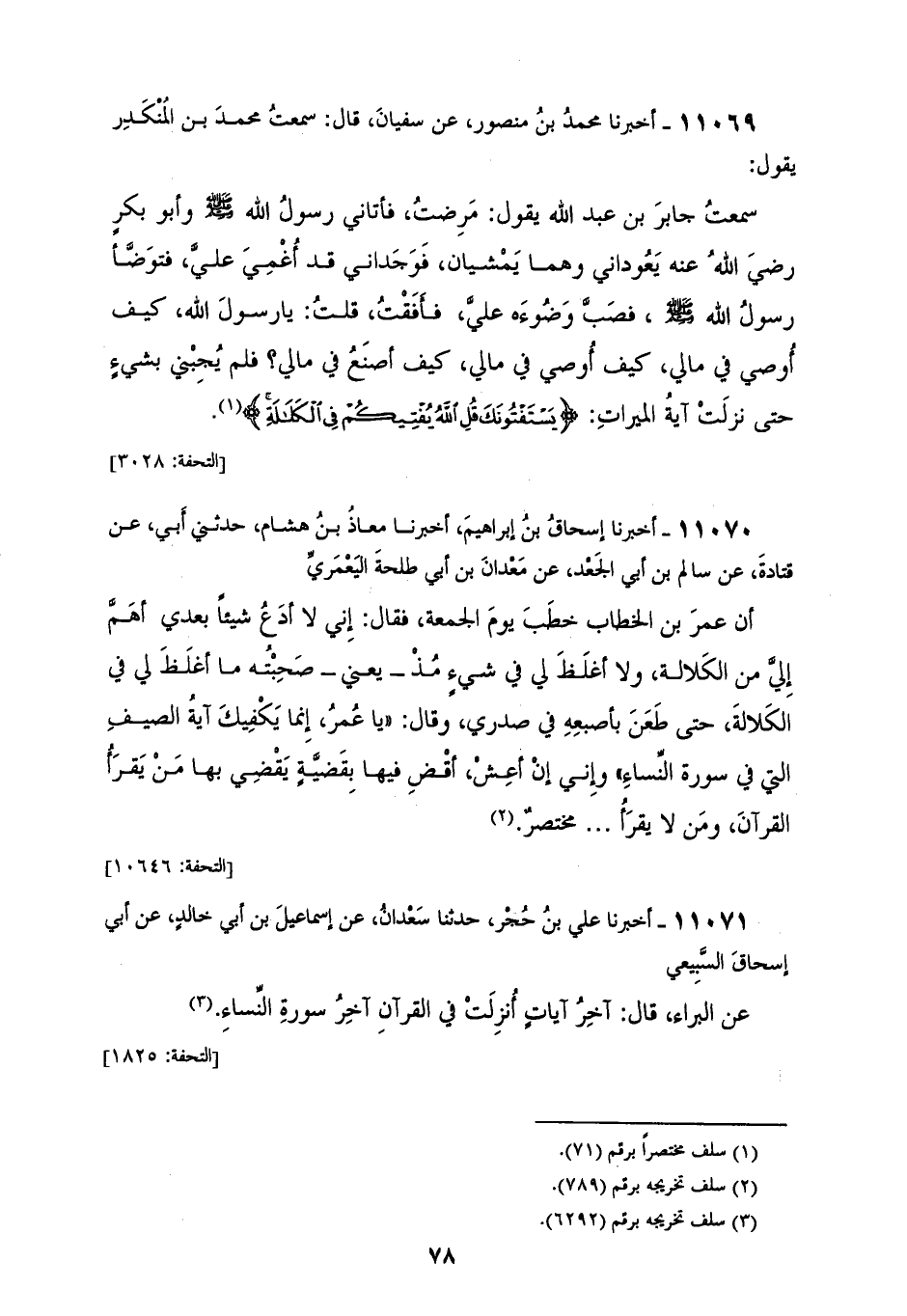 11071 - أَخْبَرَنَا عَلِيُّ بْنُ حُجْرٍ، حَدَّثَنَا سَعْدَانُ، عَنْ إِسْمَاعِيلَ بْنِ أَبِي خَالِدٍ، عَنْ أَبِي إِسْحَاقَ السَّبِيعِيِّ، عَنِ الْبَرَاءِ، قَالَ: «§آخِرُ آيَاتٍ أُنْزِلَتْ فِي الْقُرْآنِ آخِرُ سُورَةِ النِّسَاءِ»