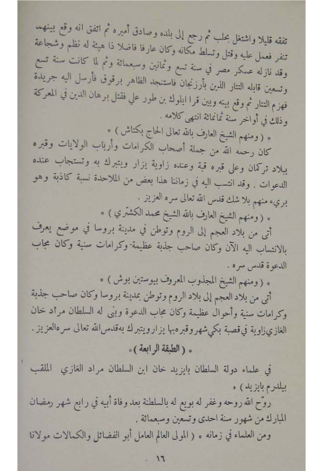 فِي عُلَمَاء دولة السُّلْطَان بايزيد خَان ابْن السُّلْطَان مُرَاد الْغَازِي الملقب بيلدرم بايزيد روح الله روحه وَغفر لَهُ بُويِعَ لَهُ بالسلطنة بعد وَفَاة ابيه فِي رَابِع شهر رَمَضَان الْمُبَارك من شهور سنة احدى وَتِسْعين وَسَبْعمائة وَمن الْعلمَاء فِي زَمَانه الْمولى الْعَالم الْعَامِل ابو الْفَضَائِل والكمالات مَوْلَانَا