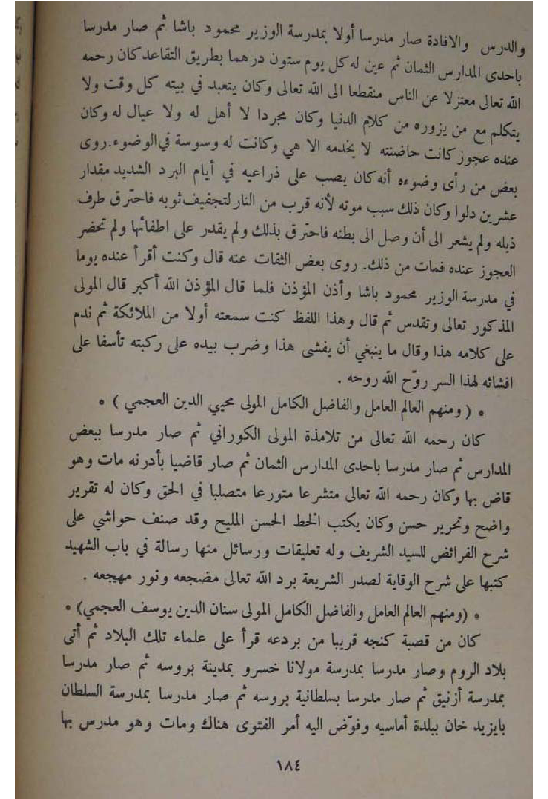 وَمِنْهُم الْعَالم الْعَامِل والفاضل الْكَامِل الْمولى محيي الدّين العجمي