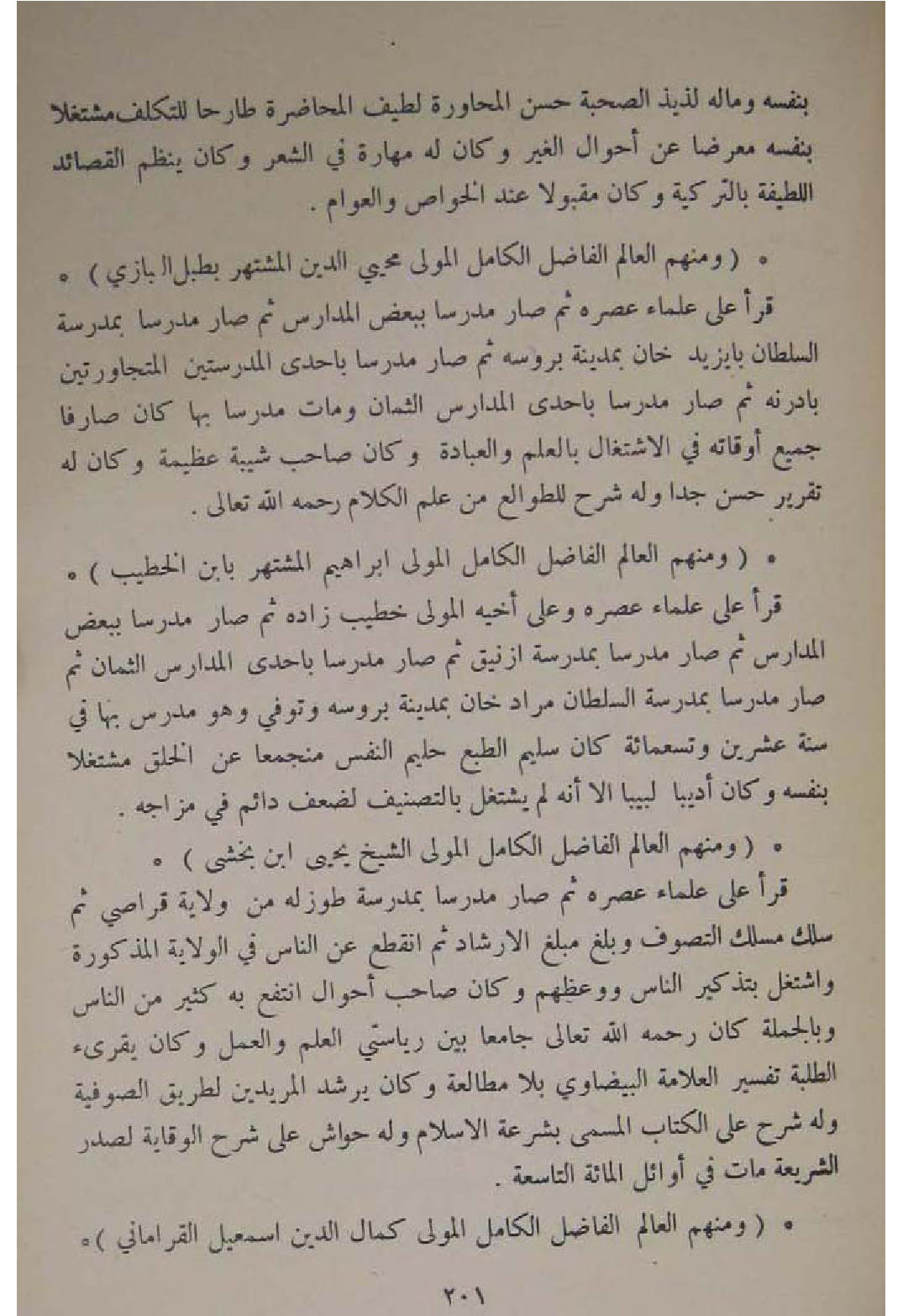 وَمِنْهُم الْعَالم الْفَاضِل الْكَامِل الْمولى كَمَال الدّين اسمعيل القراماني