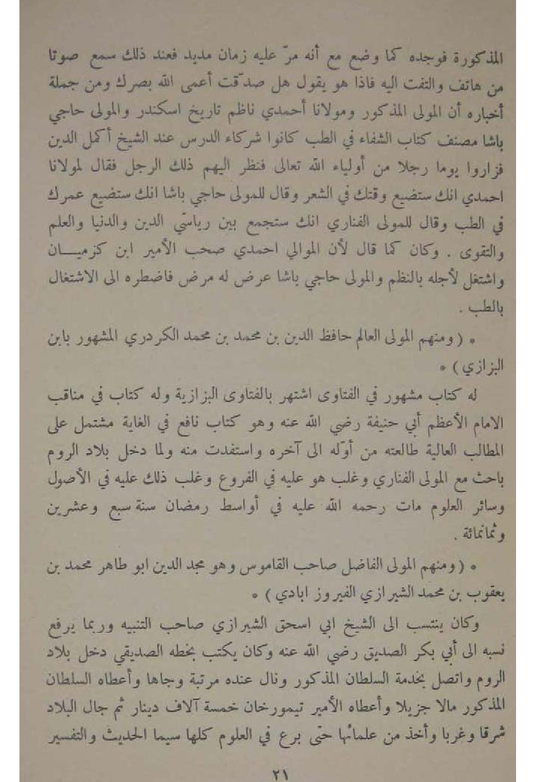 وَمِنْهُم الْمولى الْفَاضِل صَاحب الْقَامُوس وَهُوَ مجد الدّين ابو طَاهِر مُحَمَّد بن يَعْقُوب بن مُحَمَّد الشِّيرَازِيّ الفيروز ابادي
