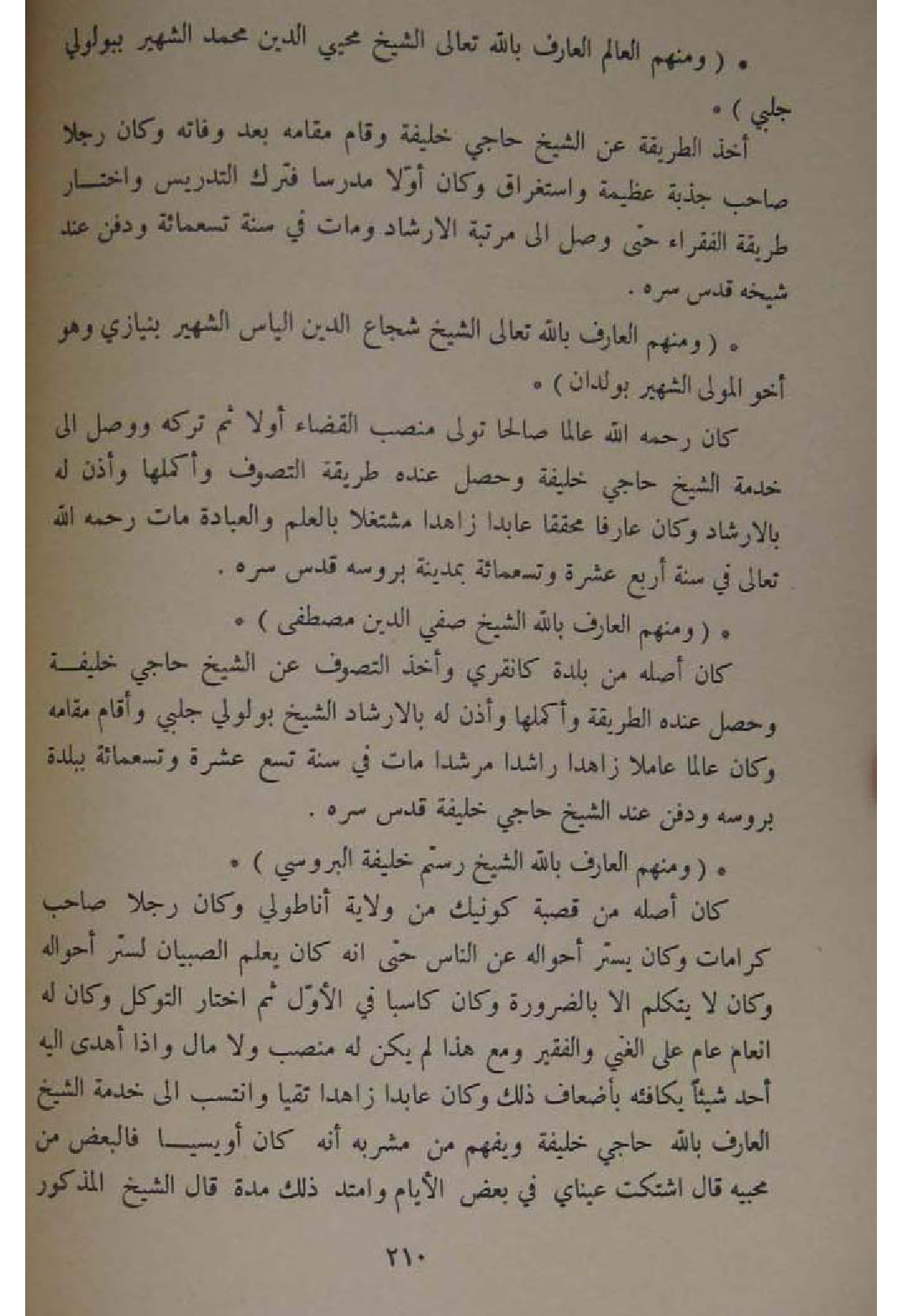 وَمِنْهُم الْعَالم الْعَارِف بِاللَّه تَعَالَى الشَّيْخ محيي الدّين مُحَمَّد الشهير ببولولي جلبي