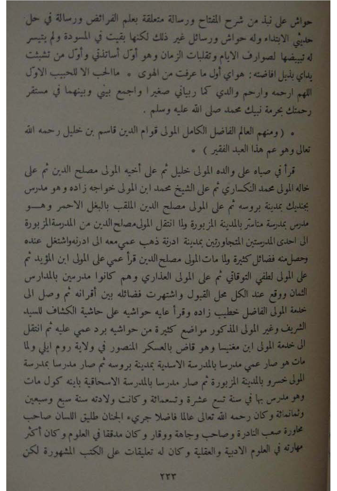 وَمِنْهُم الْعَالم الْفَاضِل الْكَامِل الْمولى قوام الدّين قَاسم بن خَلِيل رَحمَه الله تَعَالَى وَهُوَ عَم هَذَا العَبْد الْفَقِير