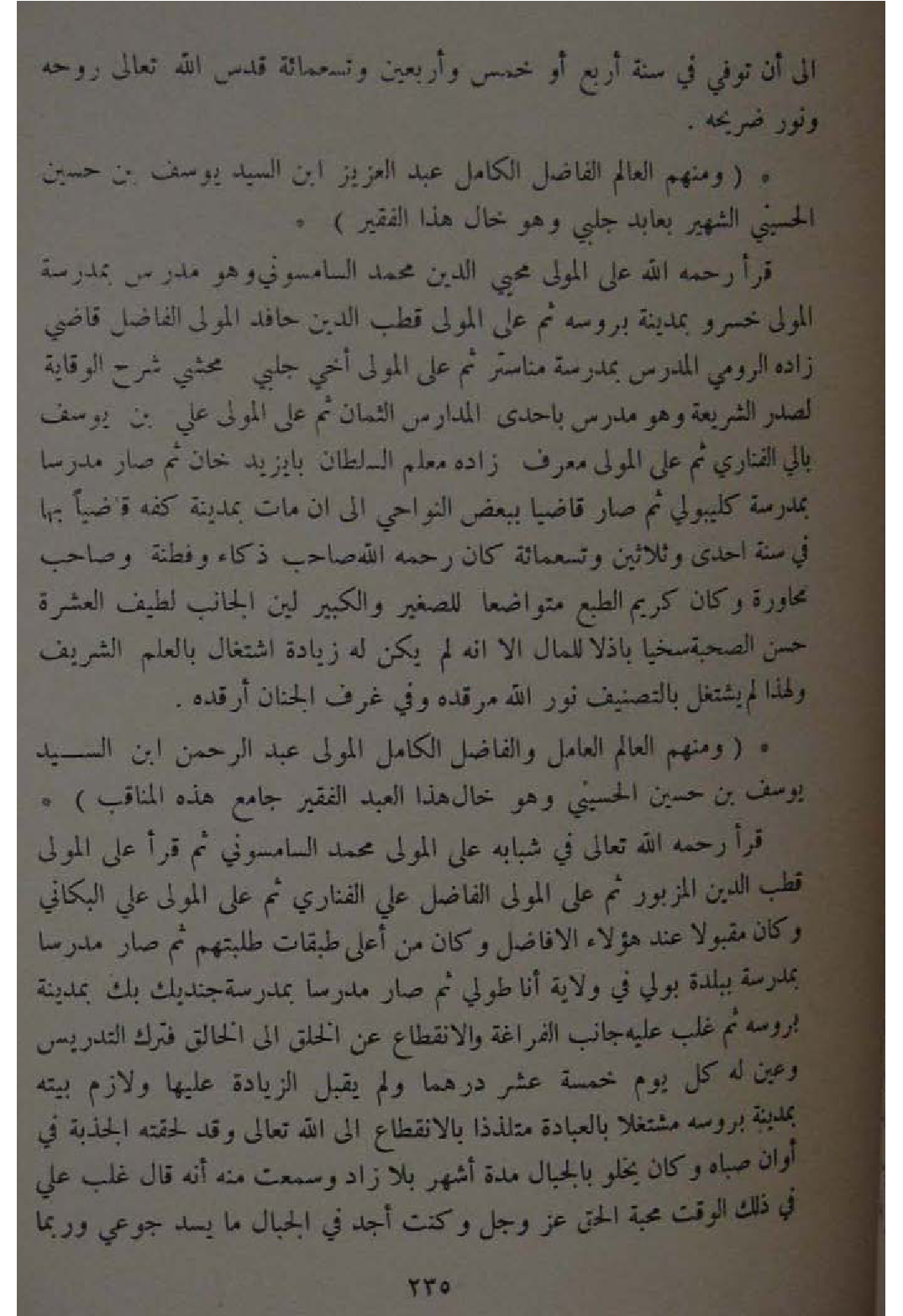 وَمِنْهُم الْعَالم الْفَاضِل الْكَامِل عبد العزيز ابْن السَّيِّد يُوسُف بن حُسَيْن الْحُسَيْنِي الشهير بعابد جلبي وَهُوَ خَال هَذَا الْفَقِير