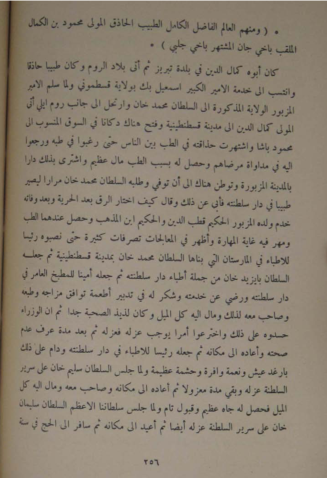 وَمِنْهُم الْعَالم الْفَاضِل الْكَامِل الطَّبِيب الحاذق الْمولى مَحْمُود بن الْكَمَال الملقب باخي جَان المشتهر باخي جلبي