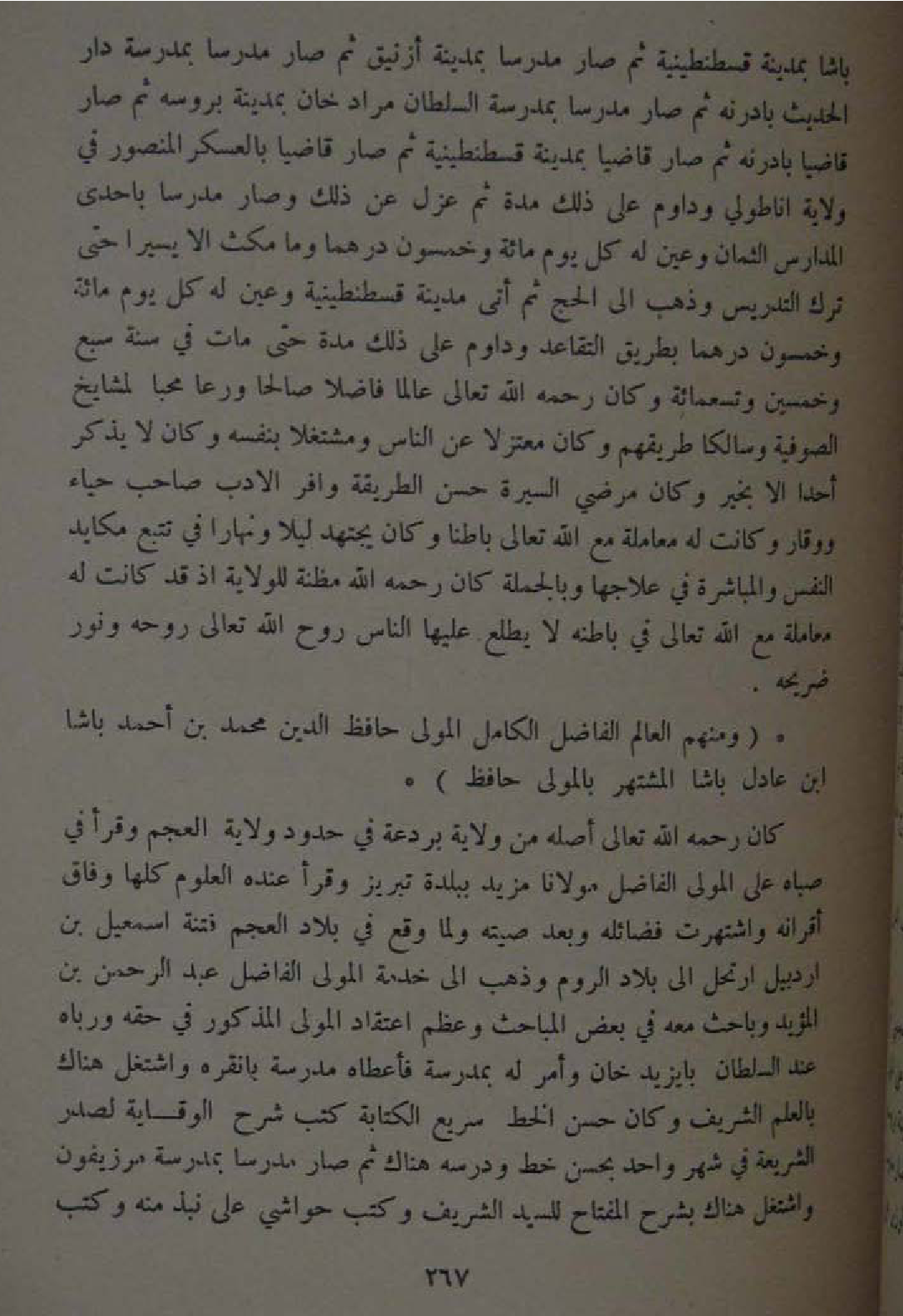 وَمِنْهُم الْعَالم الْفَاضِل الْكَامِل الْمولى حَافظ الدّين مُحَمَّد بن أَحْمد باشا ابْن عَادل باشا المشتهر بالمولى حَافظ