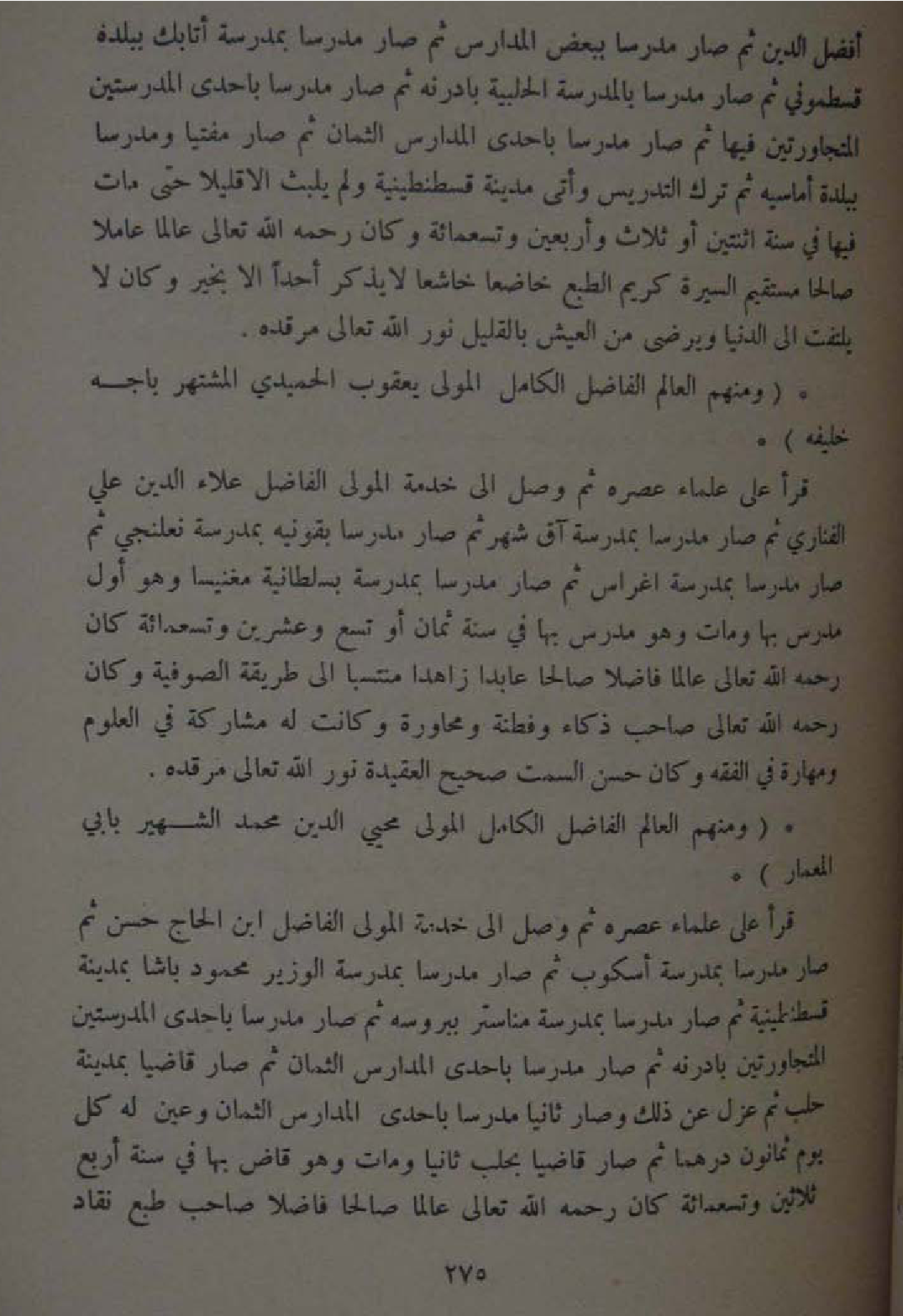 افضل الدّين ثمَّ صَار مدرسا بِبَعْض الْمدَارِس ثمَّ صَار مدرسا بمدرسة اتابك ببلدة قسطموني ثمَّ صَار مدرسا بِالْمَدْرَسَةِ الحلبية بادرنه ثمَّ صَار مدرسا باحدى المدرستين المتجاورتين فِيهَا ثمَّ صَار مدرسا باحدى الْمدَارِس الثمان ثمَّ صَار مفتيا ومدرسا ببلدة أماسيه ثمَّ ترك التدريس وأتى مَدِينَة قسطنطينية وَلم يلبث الا قَلِيلا حَتَّى مَاتَ فِيهَا فِي سنة اثْنَتَيْنِ اَوْ ثَلَاث وَأَرْبَعين وَتِسْعمِائَة وَكَانَ رَحمَه الله تَعَالَى عَالما عَاملا صَالحا مُسْتَقِيم السِّيرَة كريم الطَّبْع خاضعا خَاشِعًا لَا يذكر احدا الا بِخَير وَكَانَ لَا يلْتَفت الى الدُّنْيَا ويرضى من الْعَيْش بِالْقَلِيلِ نور الله تَعَالَى مرقده