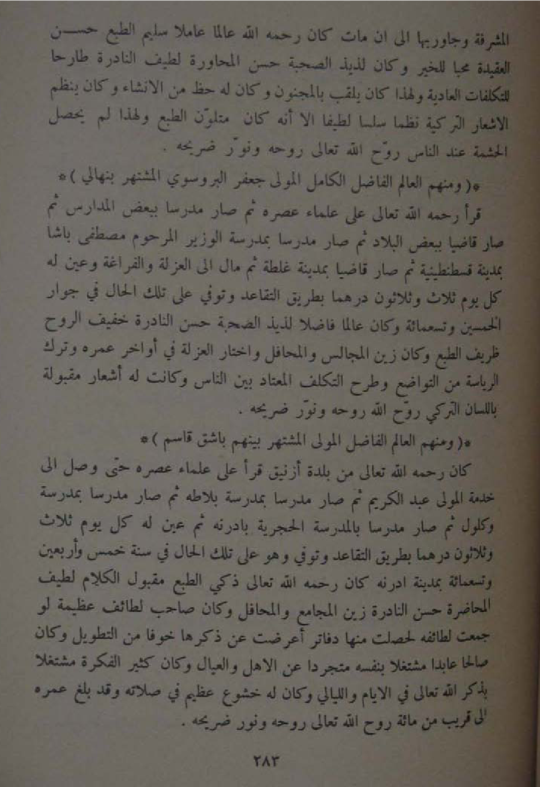 وَمِنْهُم الْعَالم الْفَاضِل الْكَامِل الْمولى جَعْفَر البروسوي المشتهر بنهالي