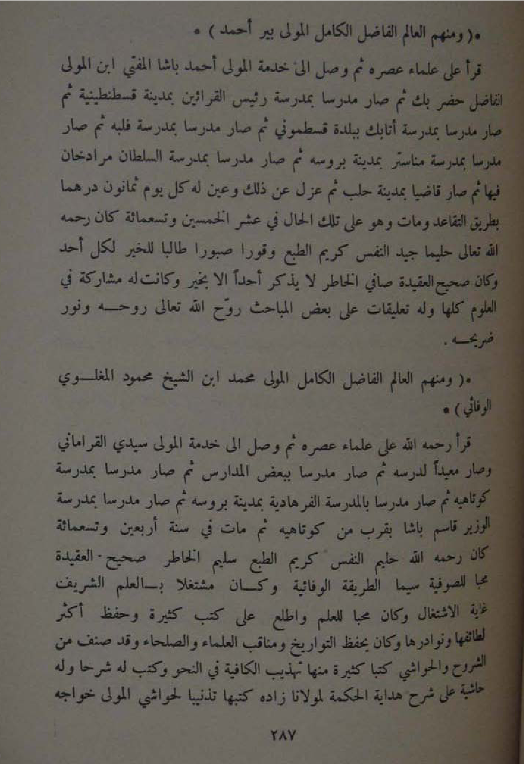 وَمِنْهُم الْعَالم الْفَاضِل الْكَامِل الْمولى بير احْمَد