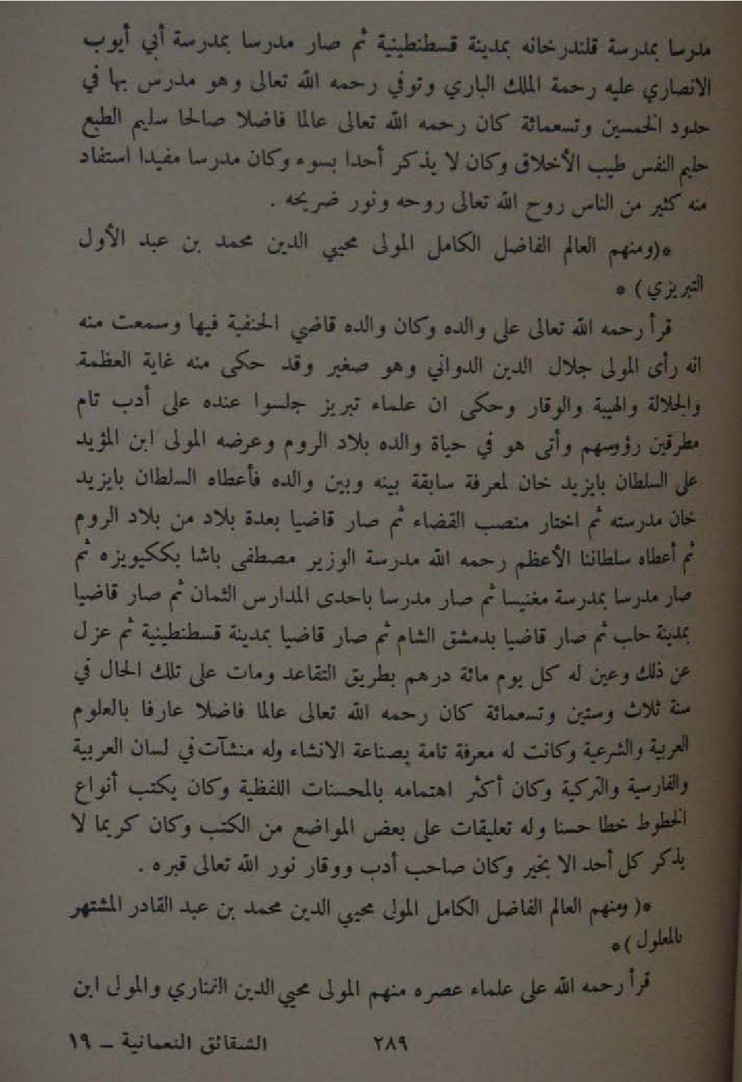 وَمِنْهُم الْعَالم الْفَاضِل الْكَامِل الْمولى محيي الدّين مُحَمَّد بن عبد القادر المشتهر بالمعلول