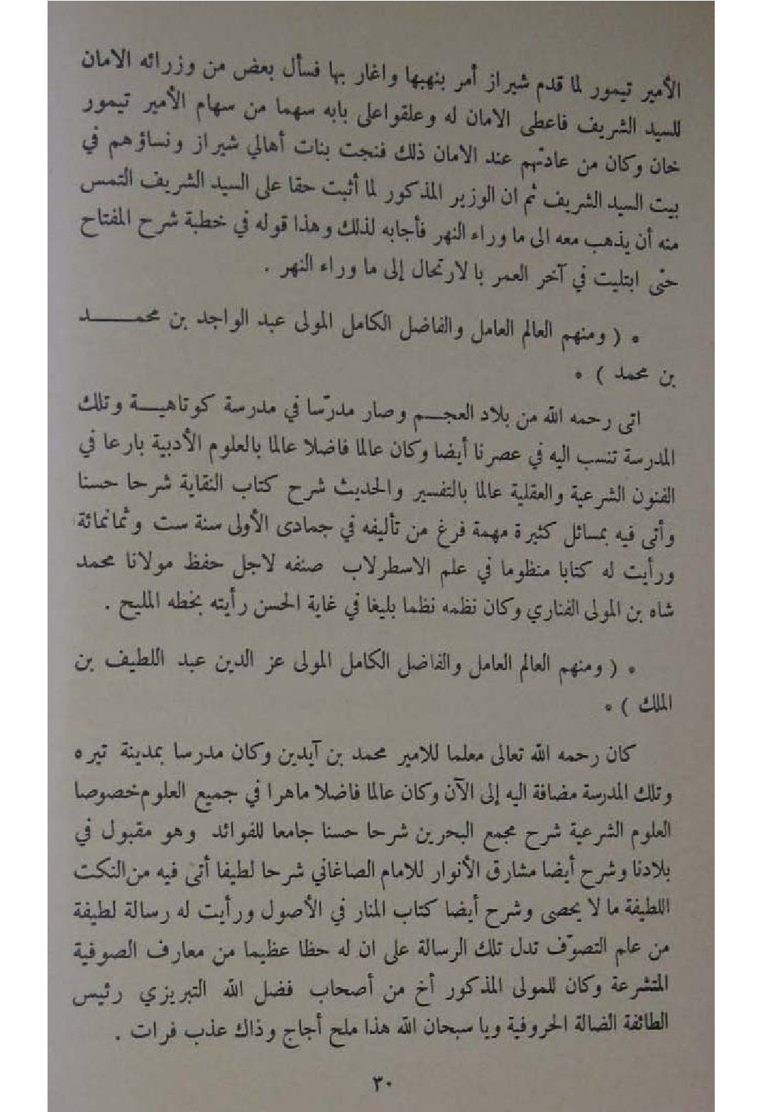 وَمِنْهُم الْعَالم الْعَامِل والفاضل الْكَامِل الْمولى عز الدّين عبد اللطيف بن الْملك